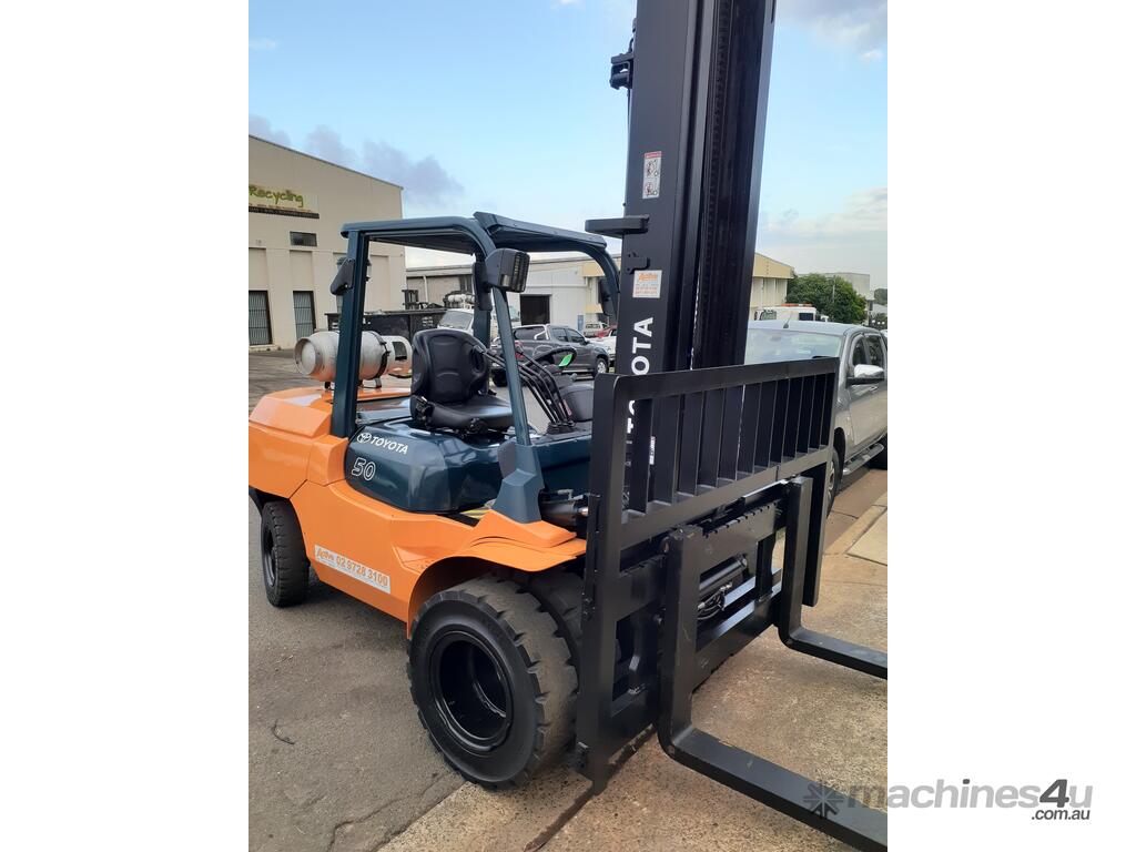 ACTIVE FORKLIFTS - Forklift 5 Ton gas Toyota wide carriage solid dual wheels 5000mm lift - Hire :      Ask for Hire Price