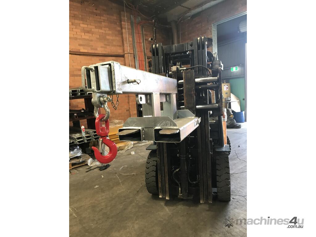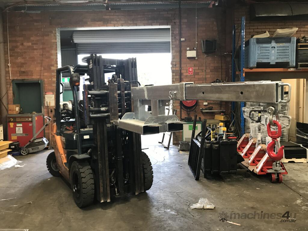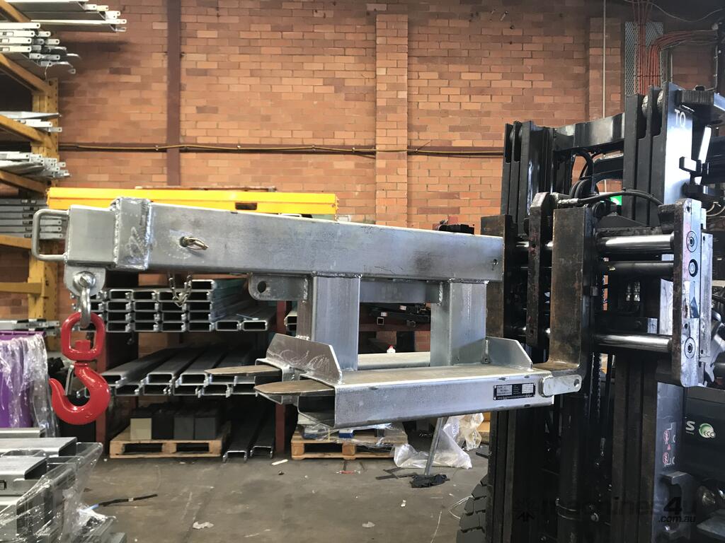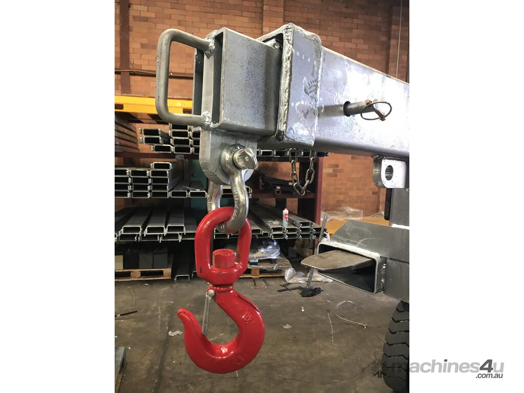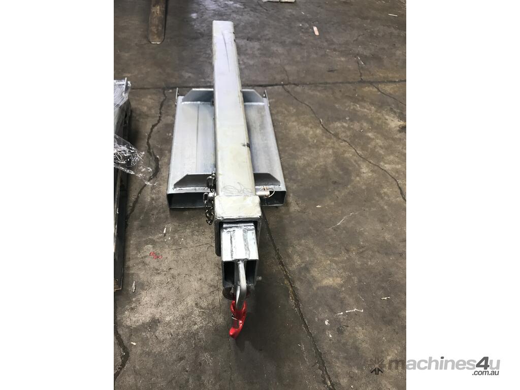 This slip-on attachment is held to the forklift by 2 safety pins. The overall length of the jib when closed is 1.3 meters.