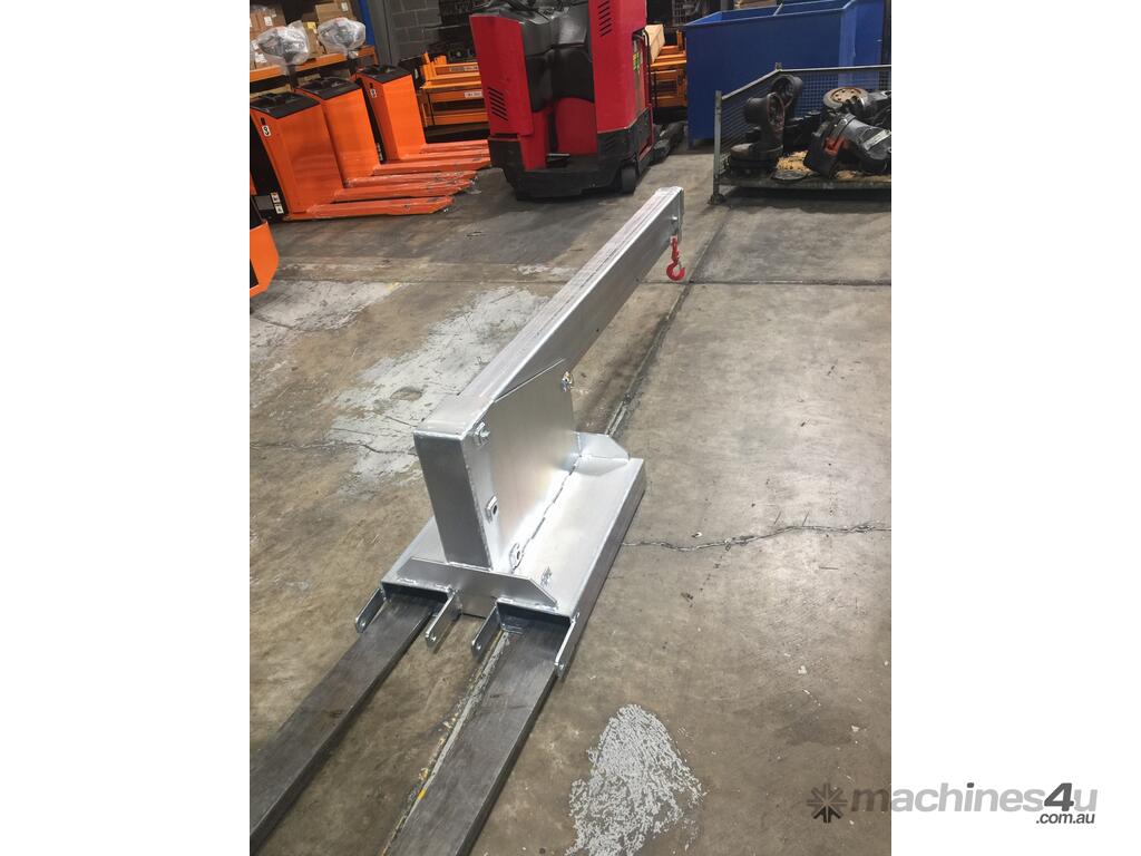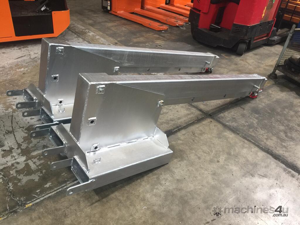 Type TLJ50 Tilt Jib (Long) The type TLJ50 Tilt Jib (Long) is the most versatile Forklift Jib attachment in our range, allowing extra height to 2.4 metres, with a 3.59 metre reach when fully extended. This slip-on attachment is held to the Forklift by a safety chain. The Jibs overall length when closed is 2.16 metres. The standard finish on the type TLJ50 Tilt Jib (Long) is Zinc Plated.