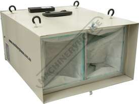This new air filter offers great features and performance at a very competitive price. It features two stage filtration with pocket filters to provide filtration down to 1 micron. It has 3 fan speeds and a timer function so you can leave the unit to run for a period after you have finished in the workshop. Both of which can be applied by remote control, which is included with the machine. Also supplied with mounting hooks and chains.