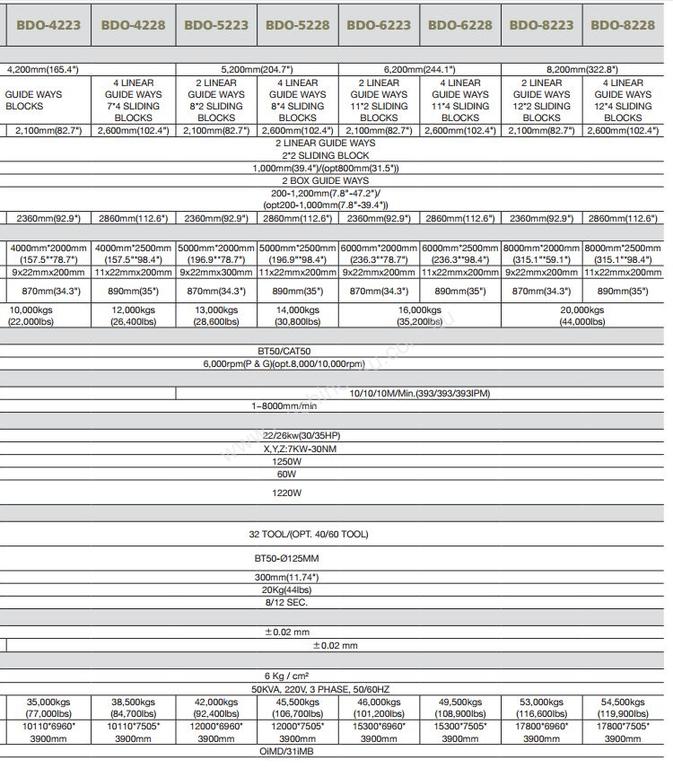 - 35-HP spindle motor, 6,000 RPM two-steps automatic change gear box.