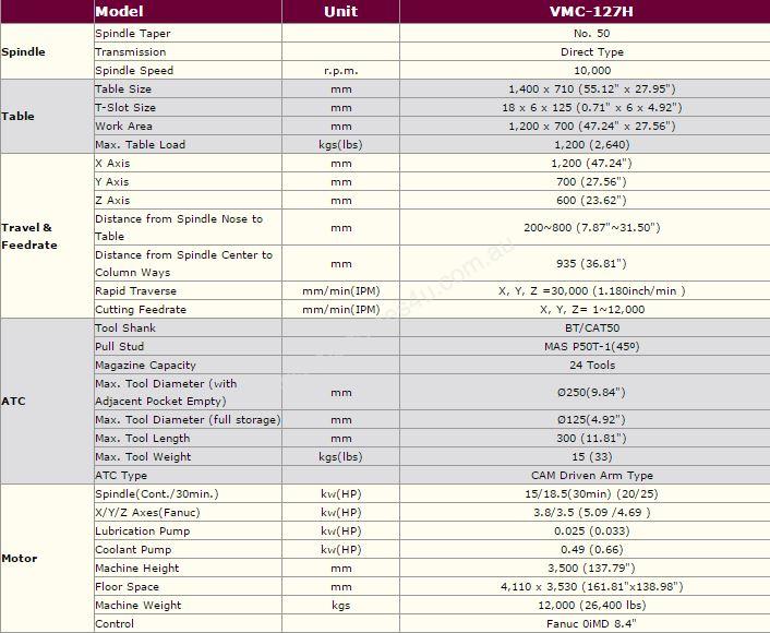 Rapid traverse rate 30000 mm/min, cutting feedrate 1-12000 mm/ min.