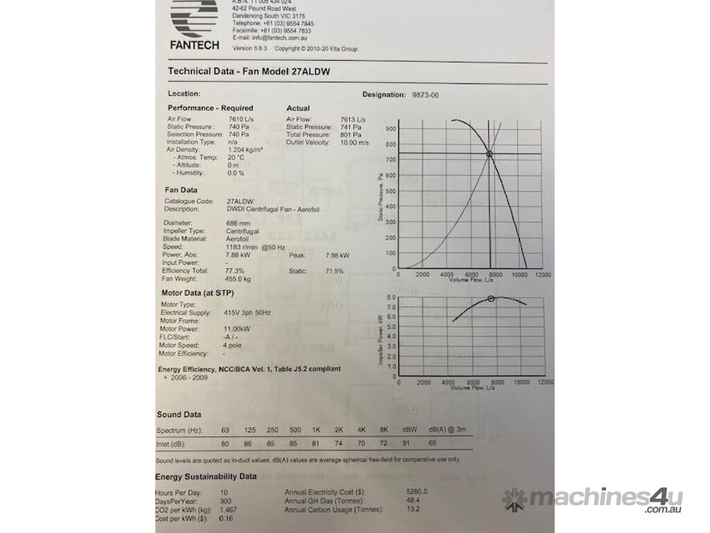 Fantech Air Fan. 11 kw 27 inch dual inlet.