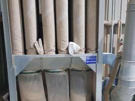 AIRTIGHT NFS-2HJ 3000 Series 45Kw 60hp 415v DUST COLLECTION SYSTEM, REVERSE AIRFLOW SELF-CLEANING BAGHOUSE AUTOMATICALLY WHILE OPERATING, ONLINE PLC CONTROLLED REVERSE AIR CLEANING SYSTEM, INCLUDING ROTARY VALVE FOR CONTINUOUS OPERATION (NO NEED TO SHUT DOWN WHEN EMPTYING YOUR WASTE BIN), WALL MOUNTED SOFT-START VARIABLE SPEED DRIVE CONTROLLER FOR LOW RUNNING COSTS, 170 Square Metres OF ADVANCED XT15 ANTISTATIC FILTER SOCKS, 4 POLE FANS FOR LONGEVITY AND NOISE SUPPRESSION, MODULAR CONSTRUCTION - CAN BE ADDED TO LATER. REFER ATTACHED BROCHURE