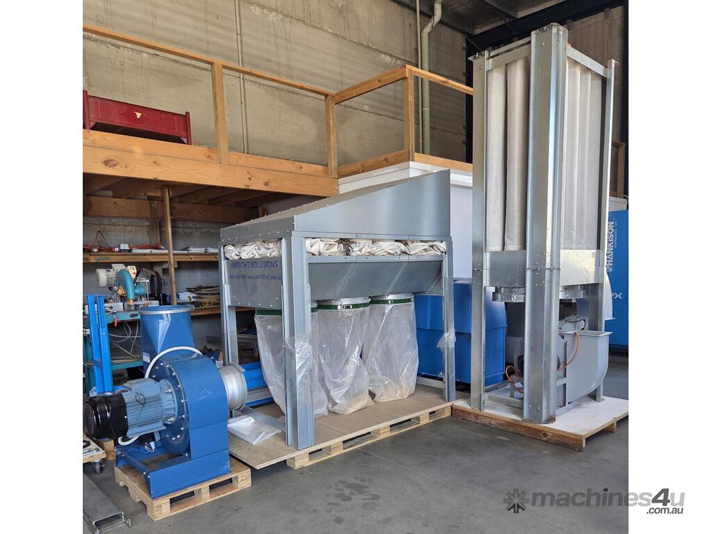 AIRTIGHT NFS-2HJ 3000 Series 45Kw 60hp 415v DUST COLLECTION SYSTEM, REVERSE AIRFLOW SELF-CLEANING BAGHOUSE AUTOMATICALLY WHILE OPERATING, ONLINE PLC CONTROLLED REVERSE AIR CLEANING SYSTEM, INCLUDING ROTARY VALVE FOR CONTINUOUS OPERATION (NO NEED TO SHUT DOWN WHEN EMPTYING YOUR WASTE BIN), WALL MOUNTED SOFT-START VARIABLE SPEED DRIVE CONTROLLER FOR LOW RUNNING COSTS, 170 Square Metres OF ADVANCED XT15 ANTISTATIC FILTER SOCKS, 4 POLE FANS FOR LONGEVITY AND NOISE SUPPRESSION, MODULAR CONSTRUCTION - CAN BE ADDED TO LATER. REFER ATTACHED BROCHURE