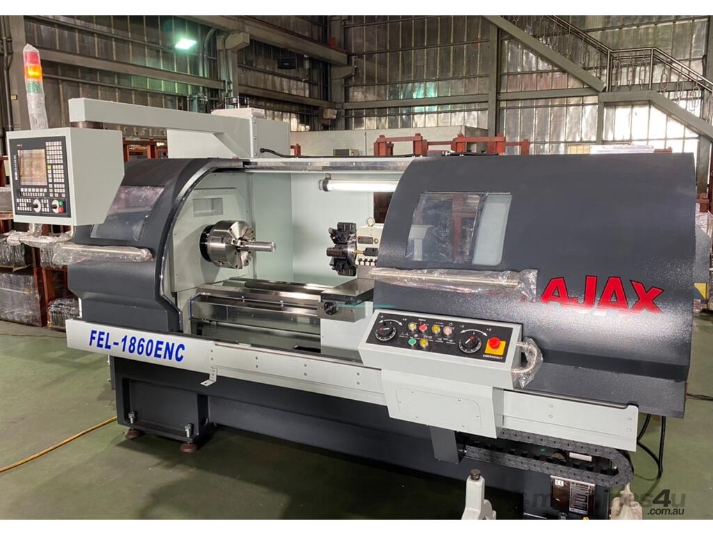 CNC MACHINERY SALES AUSTRALIA PRESENTS - AJAX 1840 and 1860ENC ``Teach In`` style flat bed CNC lathes offer the very best combination of the powerful and user friendly control system in a solid and compact lathe package.