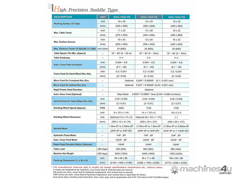 CNC MACHINERY SALES AUSTRALIA PRESENTS - AJAX Taiwanese high precision surface grinders with capacities from 250mm x 500mm up to 400mm x 800mm offer rigid construction and a high level of accuracy.