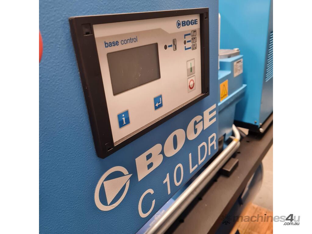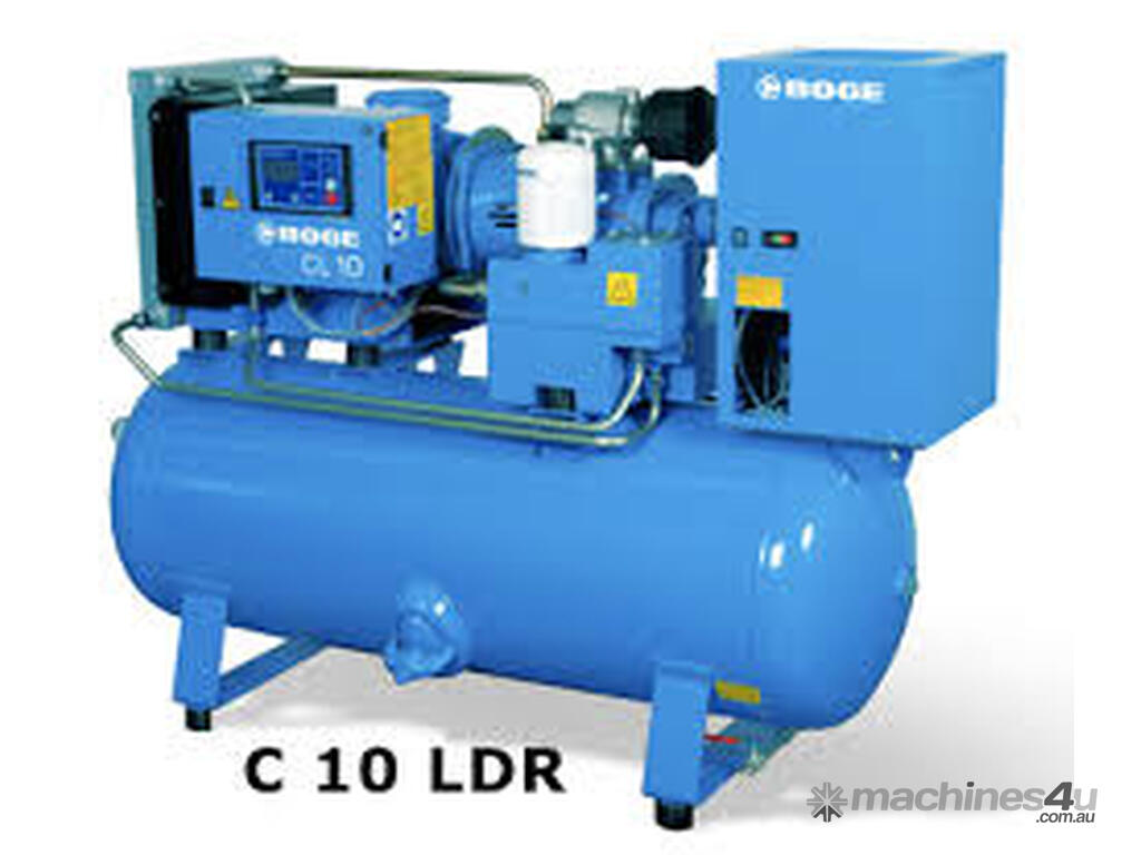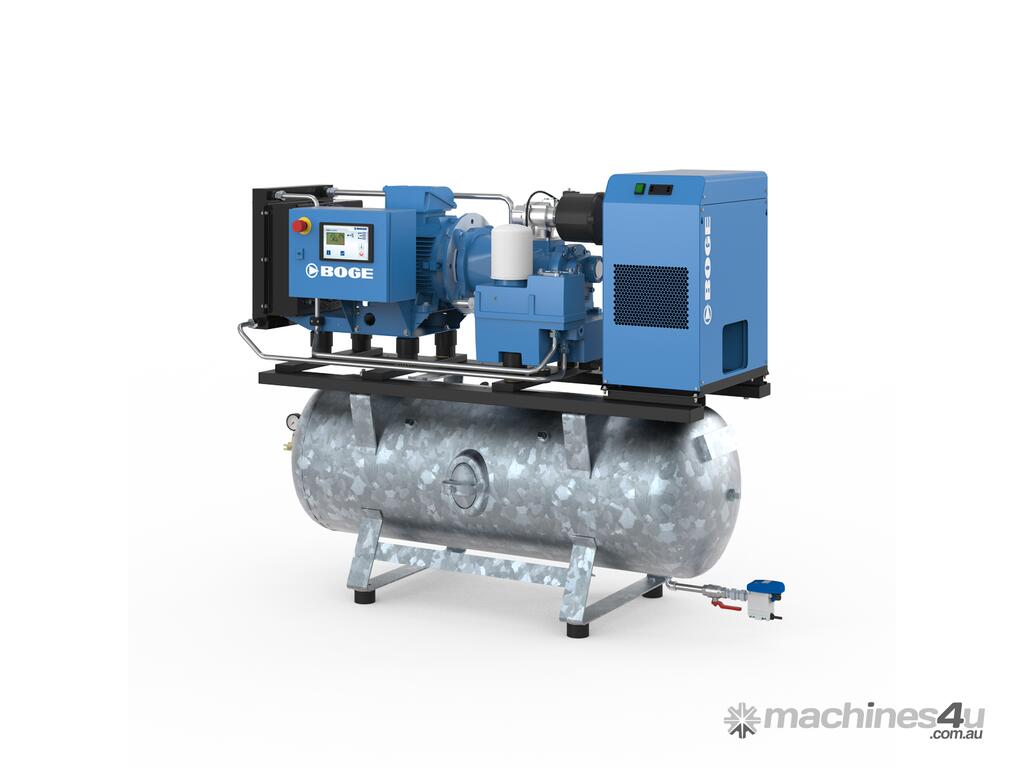 Ultimate Quality German designed and manufactured 7.5Kw, Direct Drive, super silent 1500 RPM rotary screw compressor mounted on a 350-litre receiver tank and fitted with Boge 'on board' refrigerated air dryer. This full feature package will provide 37cfm at 10 bar pressure and is ideal for operating inside your factory. Perfect unit for cabinet makers or small engineering workshops. LIST PRICE $17632