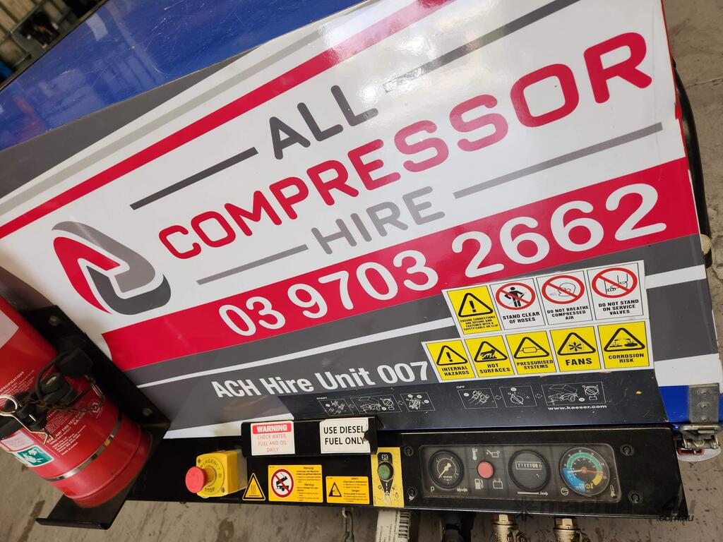 Need air now? Hire confidently and connect this large volume diesel compressor to immediately get production up and running. This Diesel Screw compressor can work at 100% and deliver 150 cfm.