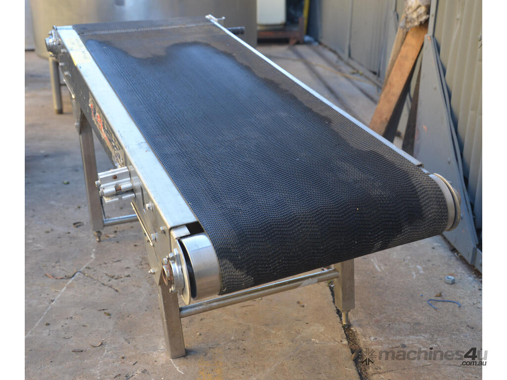 ALL STAINLESS conveyor 1450mm long motorised powered 450mm wide rubber belt
