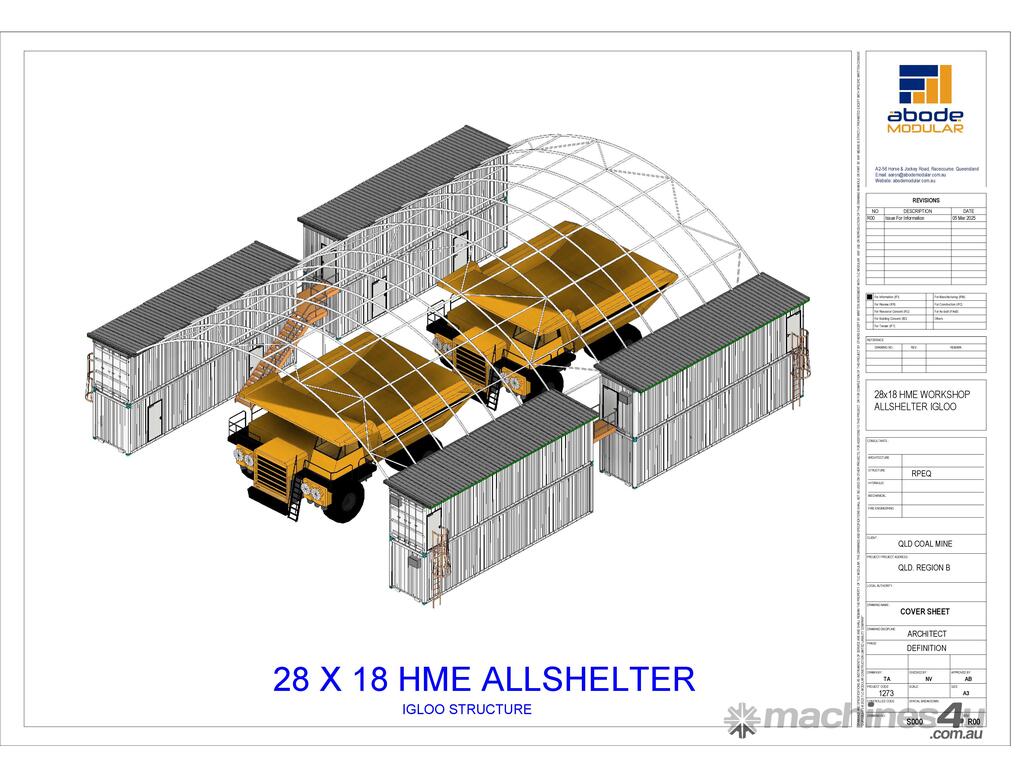 One Only, As-Is. Allshelter 18m Wide x 28m Long Double Stacked Container Custom Workshop. Loaded Free On Board (FOB) Mackay, QLD. 4740.