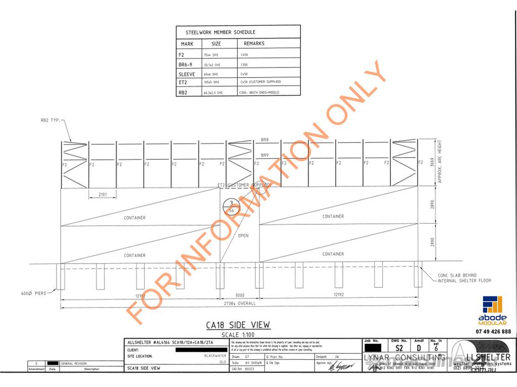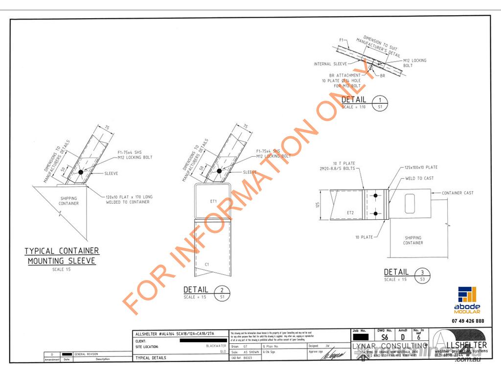 The attached Drawings are for Information Only. This is Used Stock we are selling Free On-Board your Transport Ex Mackay; "As Is"