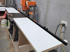 5. HETTICH BLUE MAX mini PM HINGE BORER/INSERTERS 240v x 2, MADE IN GERMANY Years 2008/2013 MOUNTED ON FACTORY BENCH, COLOUR-CODED FLIPOVER FENCE STOPS, OPTIONAL MOBILE CABINET, DRILLS etc. TOP CONDITION
