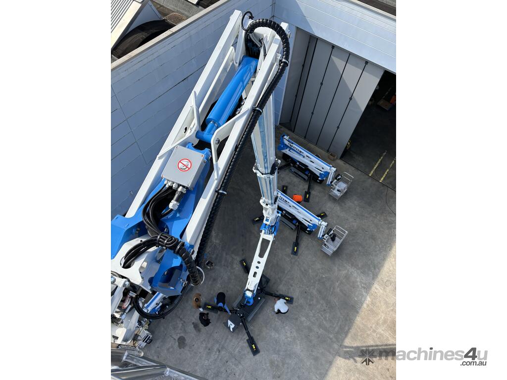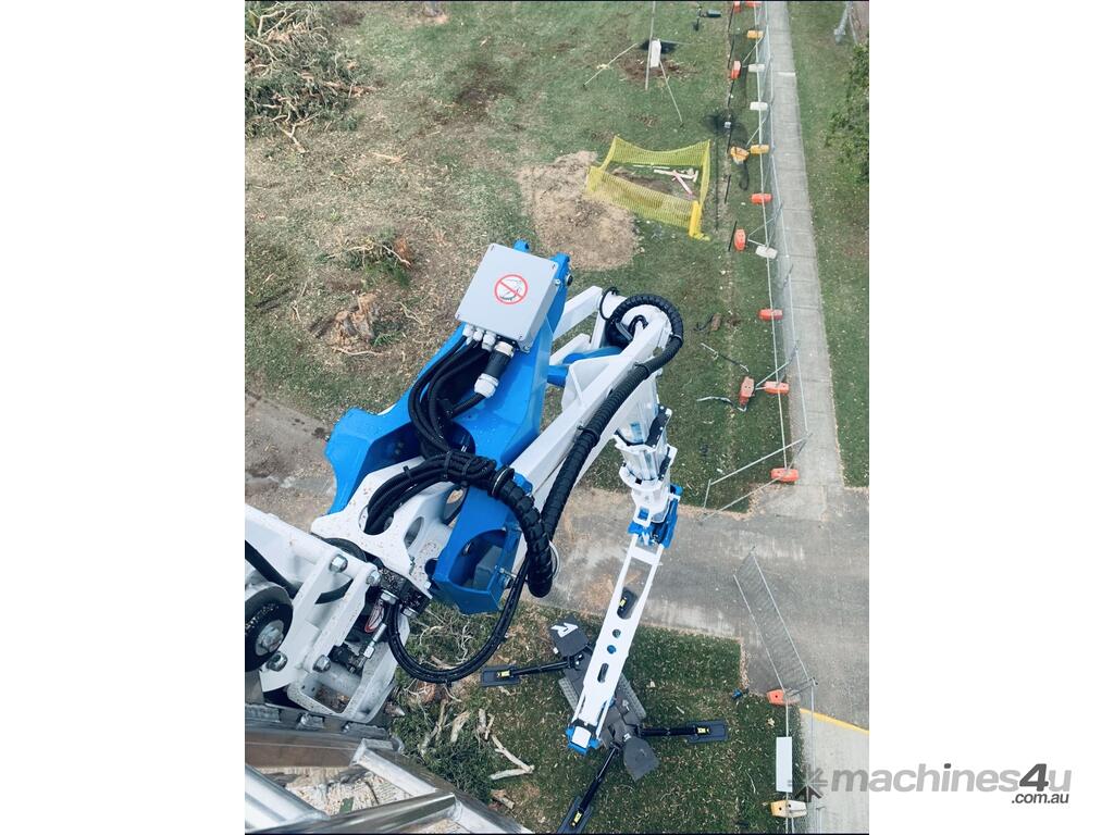 Its basket payload is 230 kg (2 operators + material) in the whole working area without any limitation. It is fitted with automatic stabilization and automatic closing.