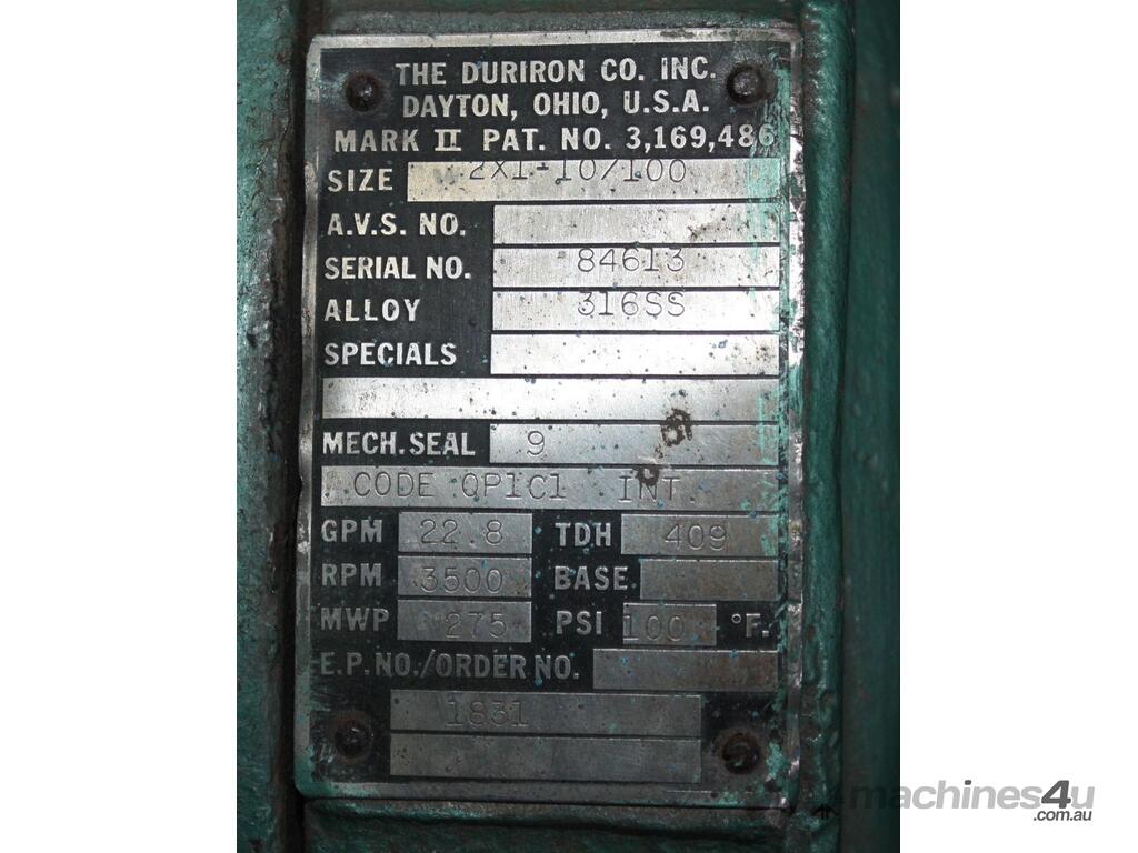 .we also have listed 2 more Durco stainless chemical process pump 2XI-107100 with no motor, please check our store, for the other listing