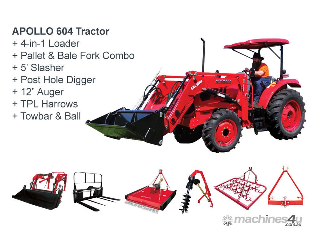 Our equestrian tractor package is based on the most common enquiries weve received from horse owners. This package is suitable for farmers with stables, horse paddocks and general agistment horse properties. The APOLLO 604 is a versatile tractor for medium to large properties. Developed for the international market in collaboration with American engineers, the APOLLO 604 incorporates many modern design features and boasts higher quality and features at an ultra-competitive price.