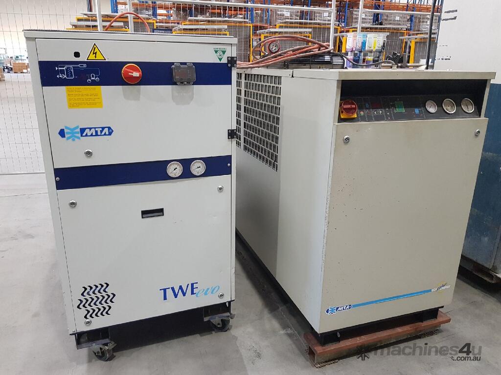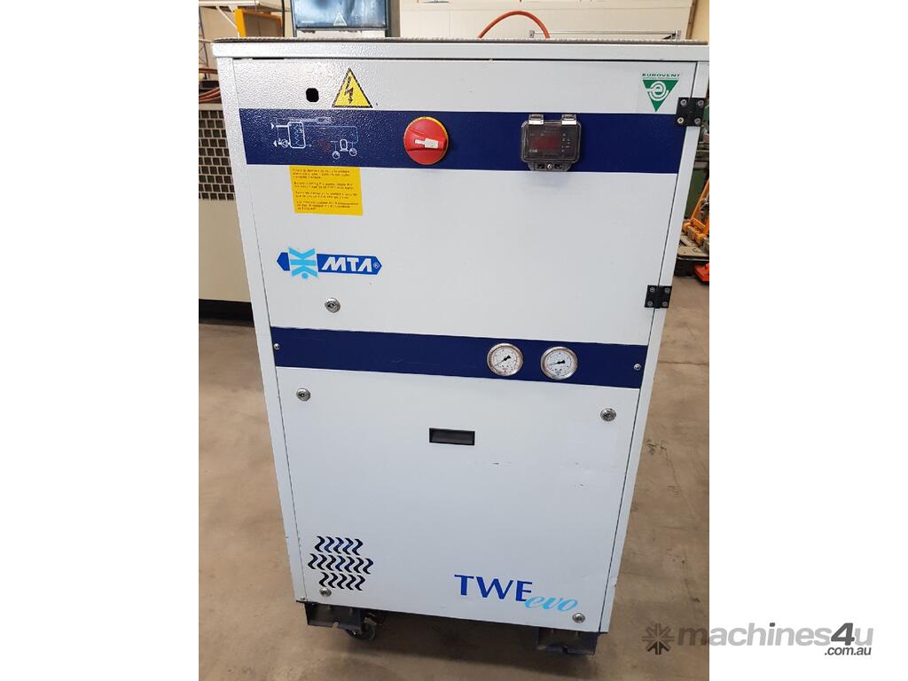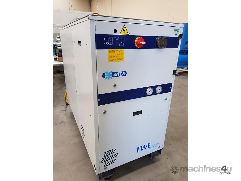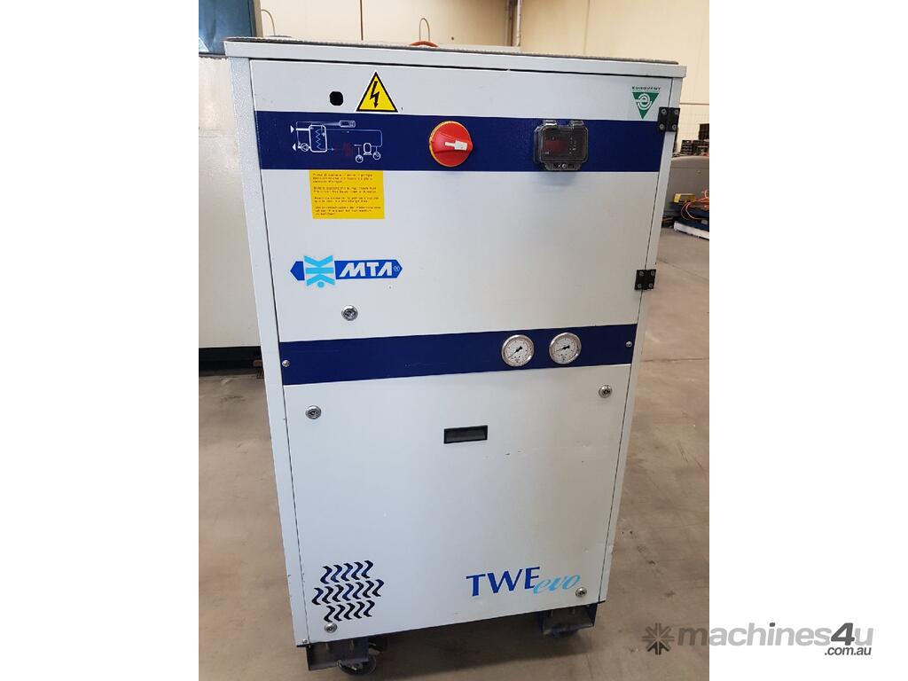 MTA Model TWE evo 081 INDUSTRIAL REFRIGERATED WATER CHILLER, WATER COOLED, COOLING CAPACITY 28.3Kw (ABSORBED POWER 6.3Kw) 415v, COOLING CAPACITY 75 Ton - 90,000 BTU/hr, 'EVO' EER ENERGY EFFICIENCY LEVELS, FEATURING SCROLL COMPRESSORS, Made in ITALY, Mobile, Very Heavy Duty, Year 2010 - Cost $ 22,000, TOP WORKING CONDITION, SEPTEMBER SALE - POA * SOLD 11/9/20* REFER TO BROCHURE. IDEAL FOR WATERJET MACHINES.