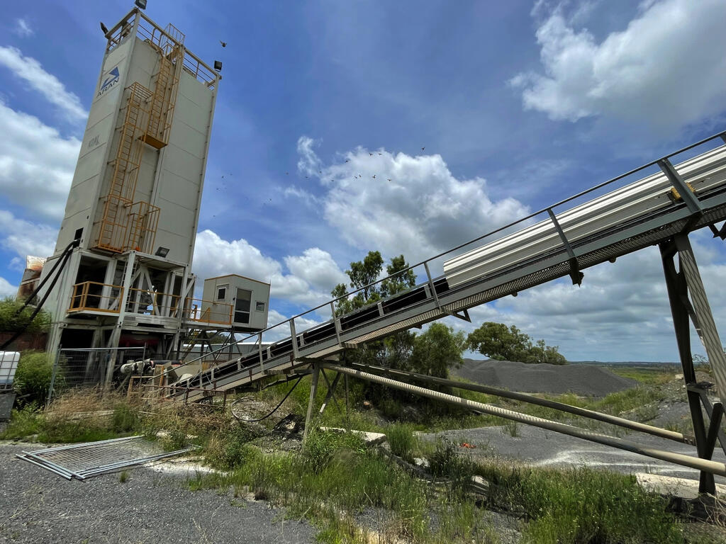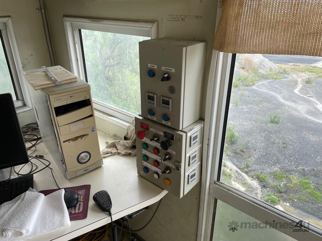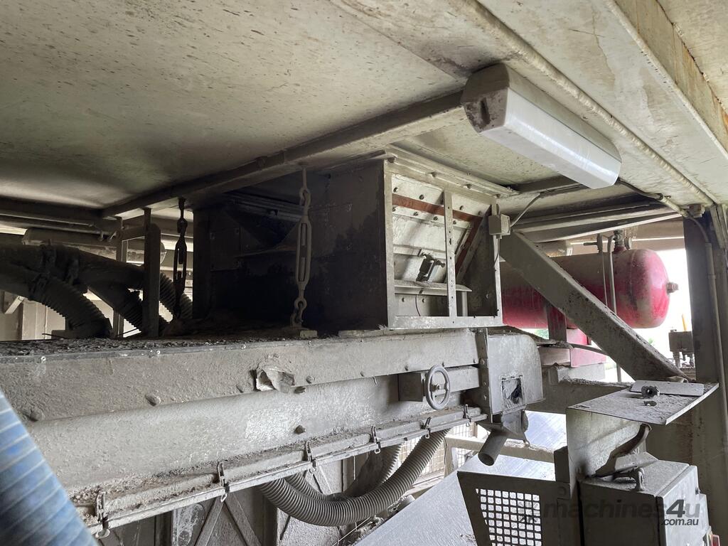ARAN MODUMIX II RCC PUGMILL PLANT - Modular Pugmill Plant capable of continuously mixing 400m3 per hour of RCC (Roller Compacted Concrete). Duo Feed Bin Arrangement, Dual Overhead Mounted Cement Silos, Aran 4m Long Twin Shaft Pugmill, 25m Discharge Conveyor, Overhead Discharge Gob Hopper. Ground mounted Water Tanks. Generator powered (Generator not included). Plant was fully operational prior to decommissioning.