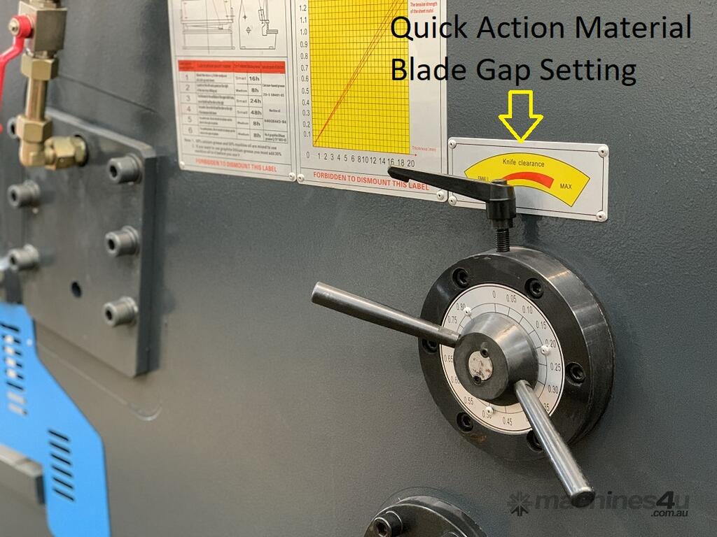 Combining NC programmable precision ballscrew swing away back gauge, quick action blade gap setting and a very attractive price.