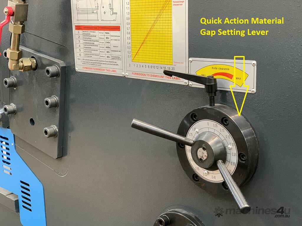 Combining NC programmable precision ballscrew swing away back gauge, quick action blade gap setting and a very attractive price.