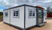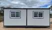 Unused Expandable 2 Bedroom Container House with Ensuite Model L0206-BR2 Includes 8 Sliding lockable Double Glazed Windows 1 x Door Timber look flooring 2 individual Bedrooms Small Kitchenette Ensuite fitted with Shower Toilet Sink Mirror lockable door Hot Cold-water inlets 2 waste outlets Exhaust fan vent Gas struts winches for easy assembly Size when opened out 19ft x 20ft Adjustable feet for easy levelling Unit is folded up and ready for transport Toilet WELS Registration Number L07047 Efficiency Star Rating 4 Water Consumption Full Flush 4.5 L Half Flush 3.1 L Nominal Average Flu....