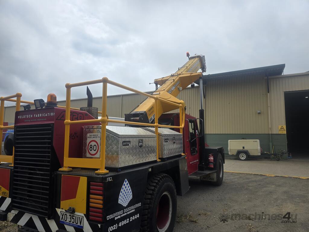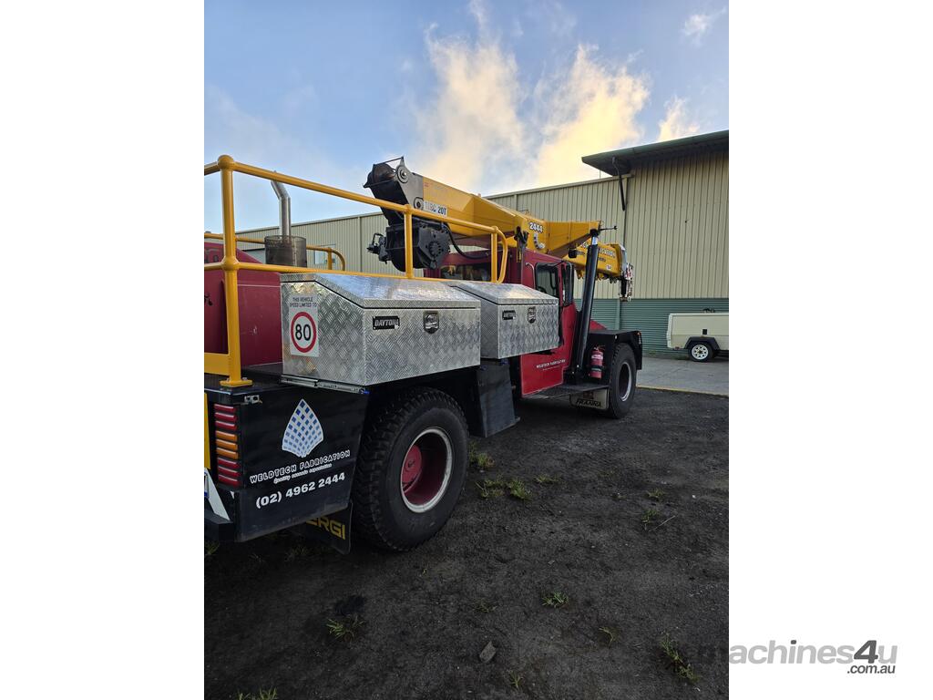 Since Purchase last year, This AT20 Franna has had handrails fitted with slide out toolboxes which allow for service access and additional storage space for tools and rigging equipment. 3m fly jib with fold down system for easy installation and removal for transport of the fly jib.