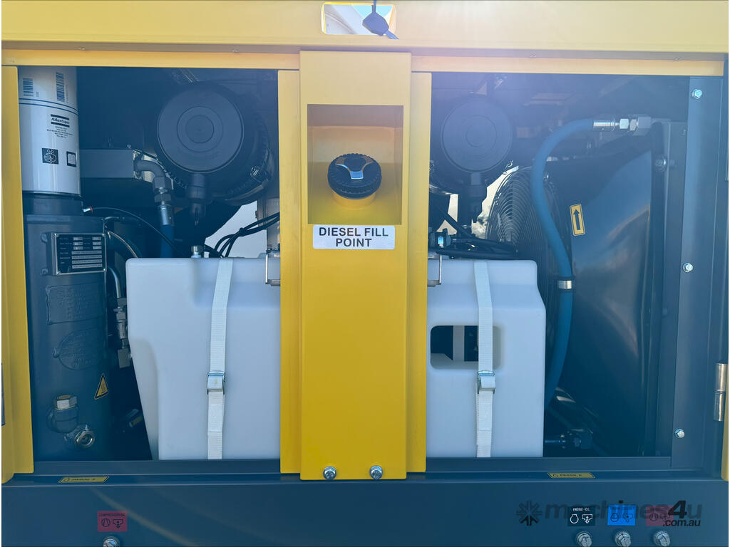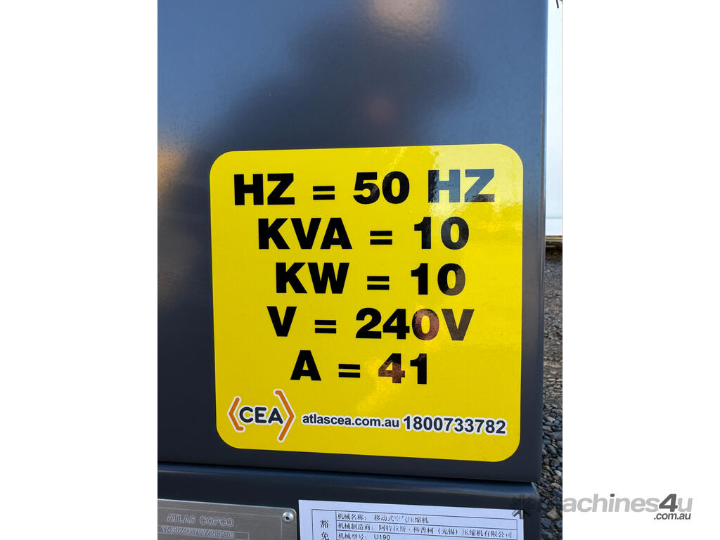 Atlas Copco U190 Air compressor 190cfm / 100psi with aftercooler and air water separator, 10kva 240v generator compressor combination.