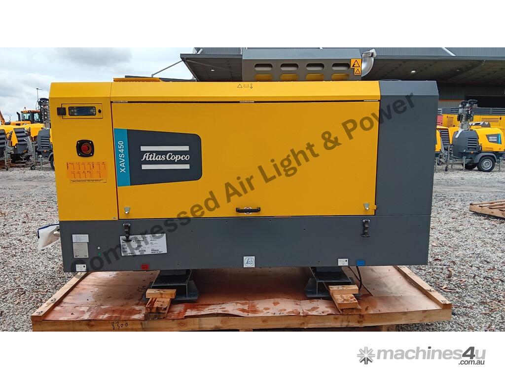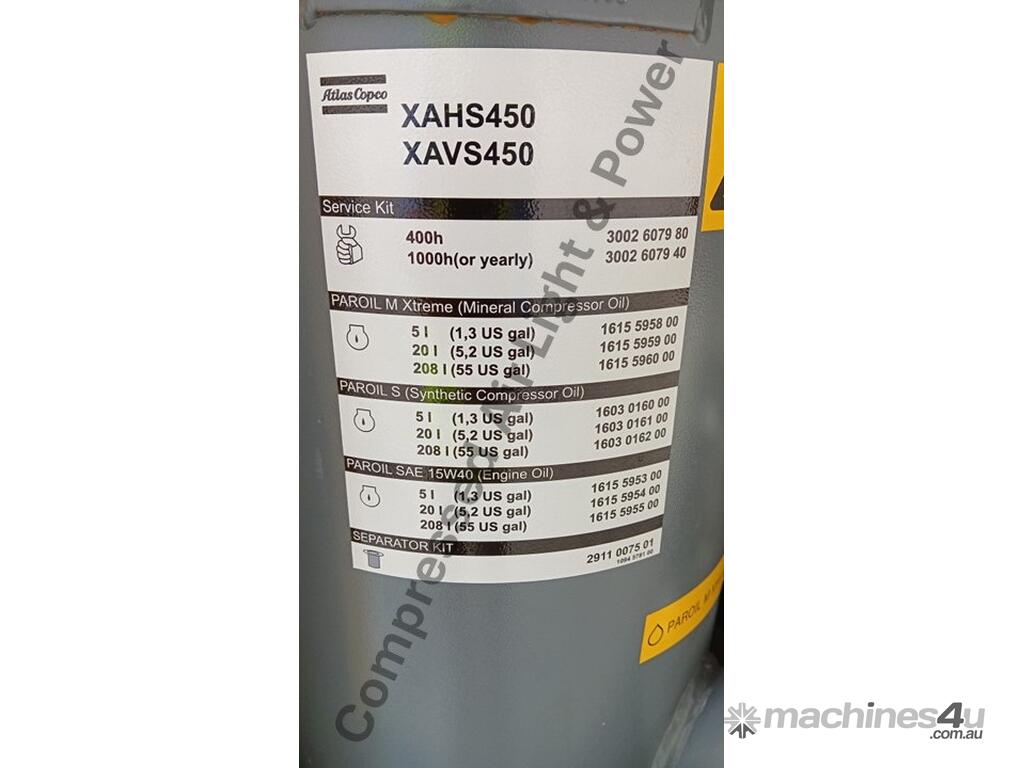 The Atlas Copco XA(H,V)S 450 is a silenced, single-stage, oil-injected screw compressor, powered by liquid-cooled, four and six-cylinder Cummins diesel engine.