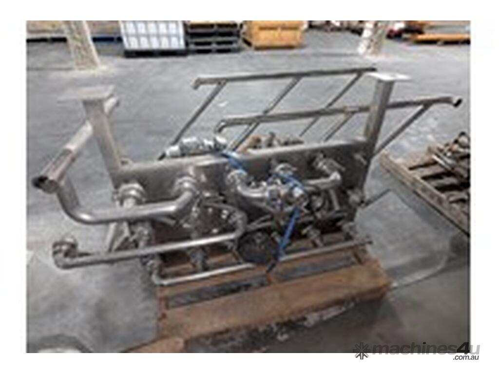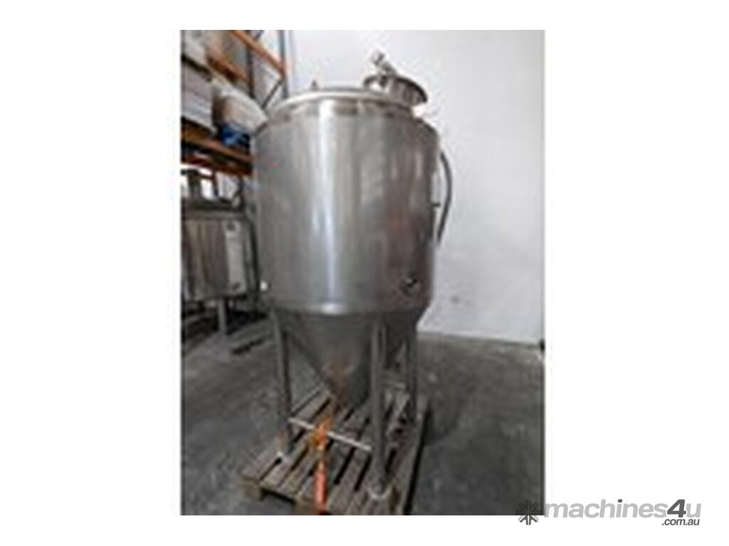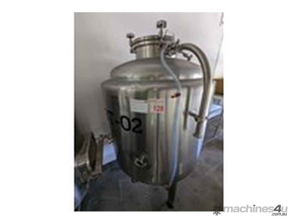We think this was part of a Dry Ice soda blast Blasting Machine. Stainless steel pressure vessel pot hopper with an air motor driven masher and has a air driven vibrator on side of vessel. 150mm opening at top of vessel.....