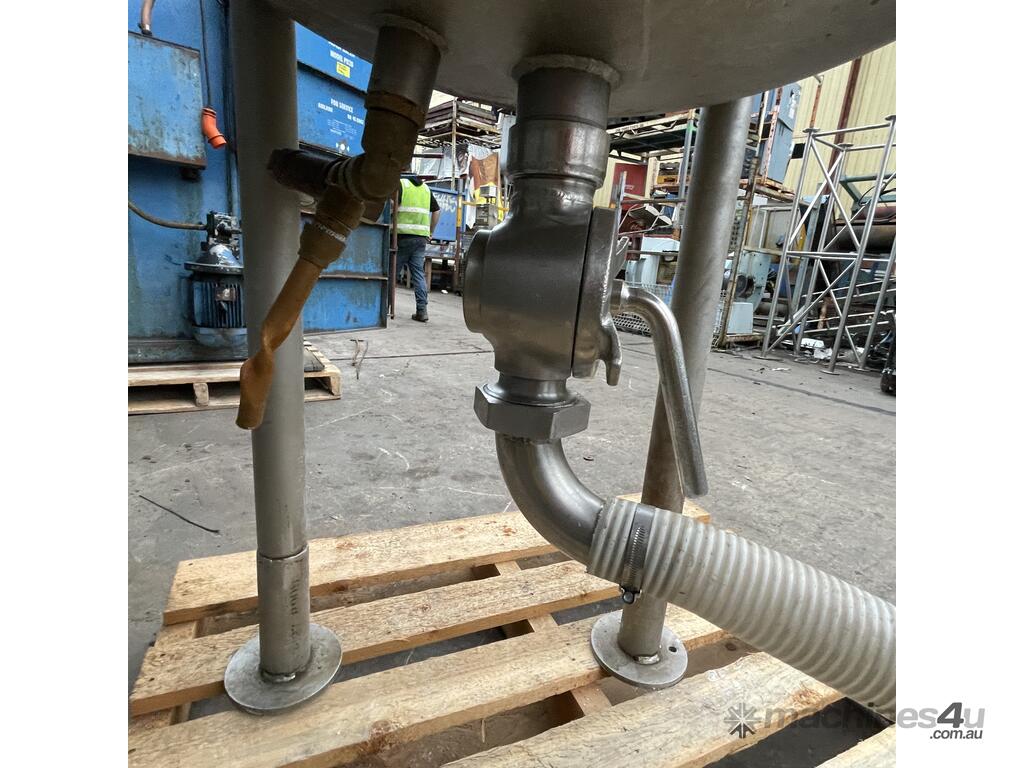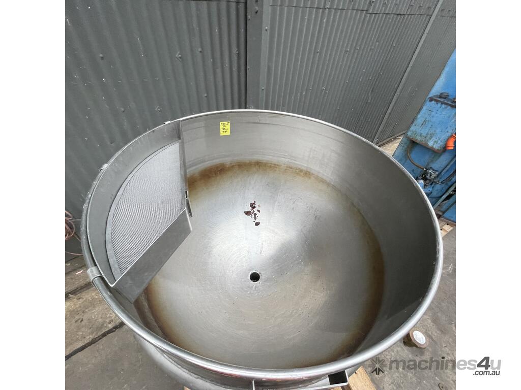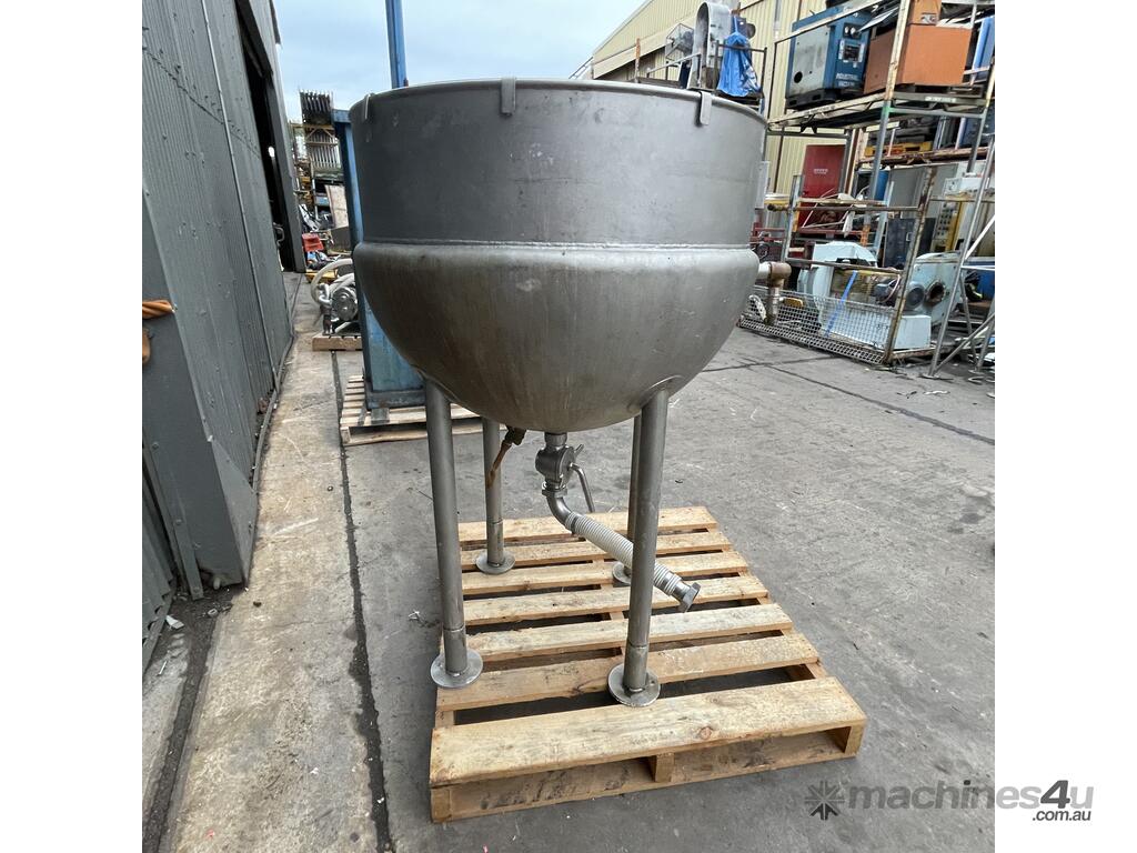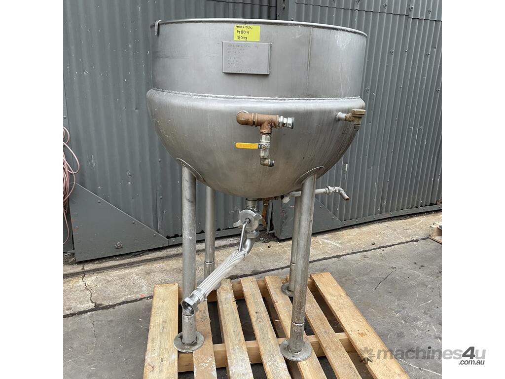 STAINLESS STEEL HEAT JACKETED BOWL, AUSTENITIC FABRICATION, VIC ON STAND (SPECS AS PER PLATE PHOTO) BOWL DIAMETER: 960mm OVERALL HEIGHT: 1500mm