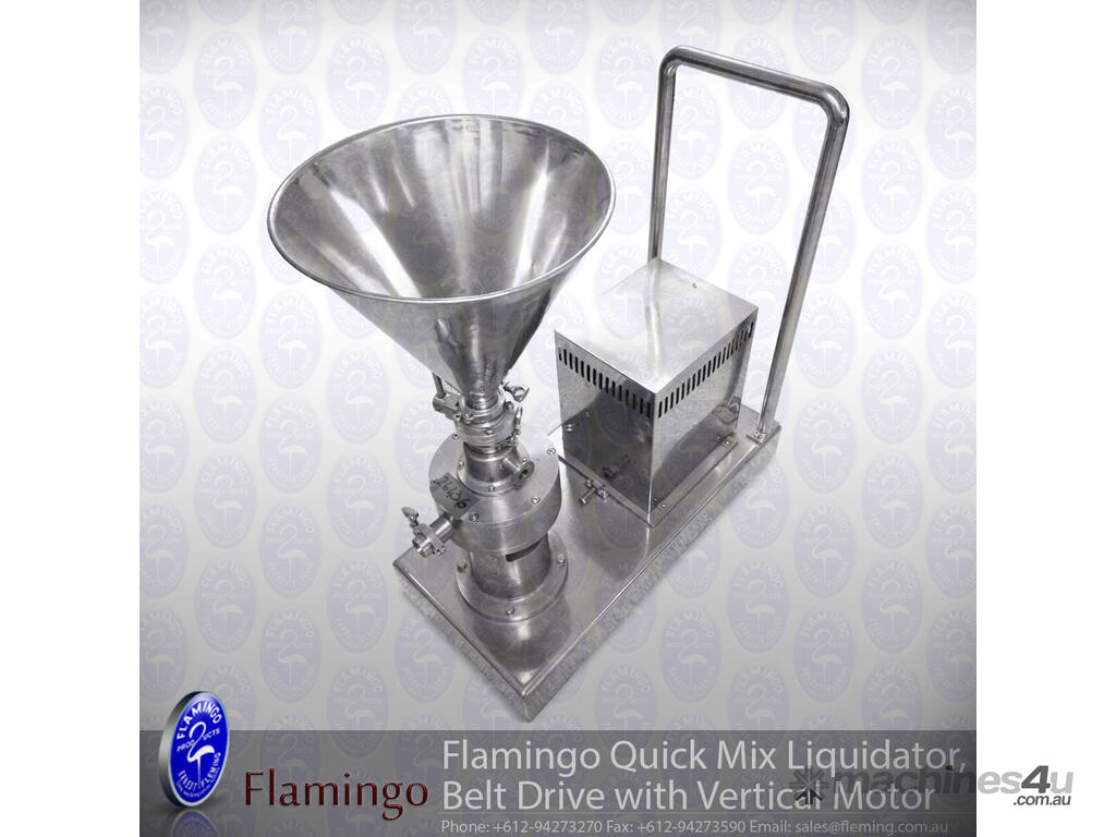 The Flamingo Quick-Mix is very effective where the addition of solids is required. The process involves the simple addition of powders to a continuous liquid stream. The introduction of the powder is into the high shear zone of the Quick-Mix and thus avoids prior contact with the liquid phase which may create "fish eyes" of partially wetted material. The instant dispersion of the solids into the liquid through a screen (changeable) creates a homogeneous product. The product can then be recirculated via a holding tank to ensure that the whole batch is identical. The Quick-Mix can then be used as a pump to transfer the finished product to a holding tank.
