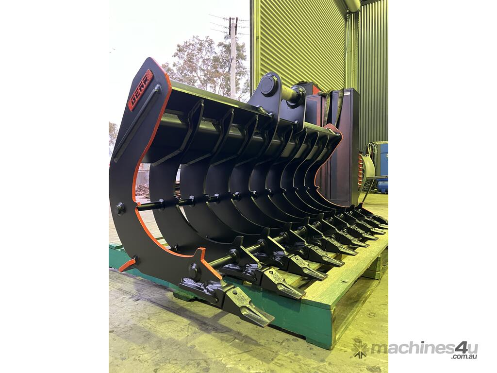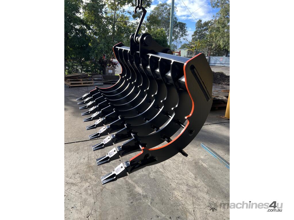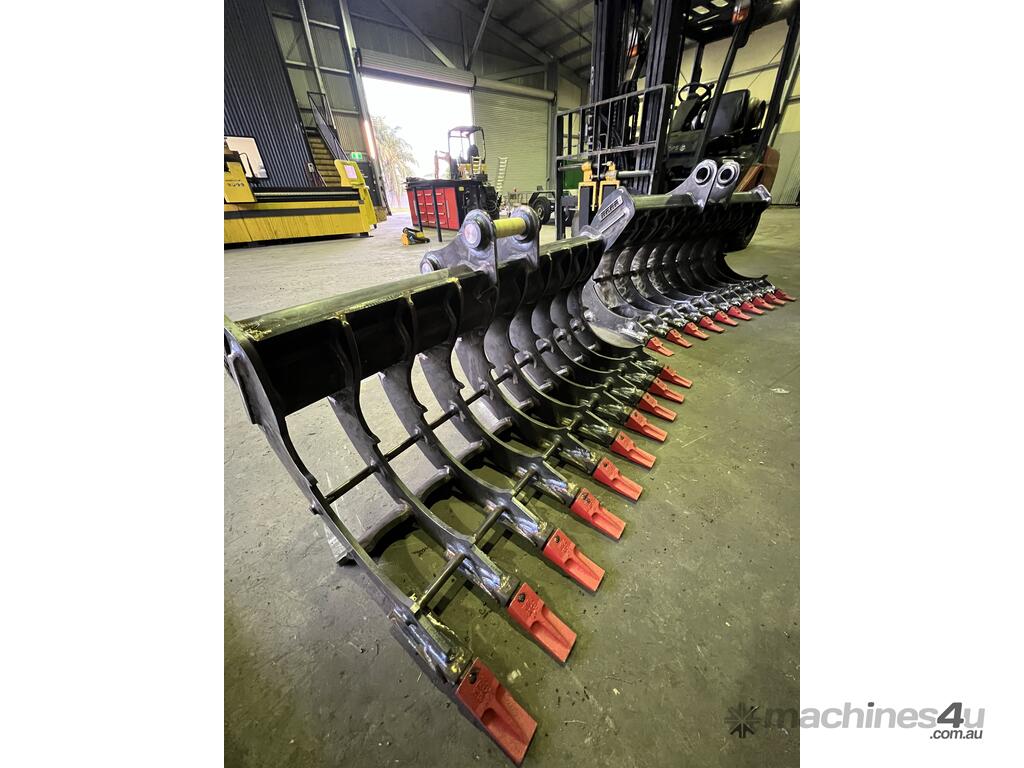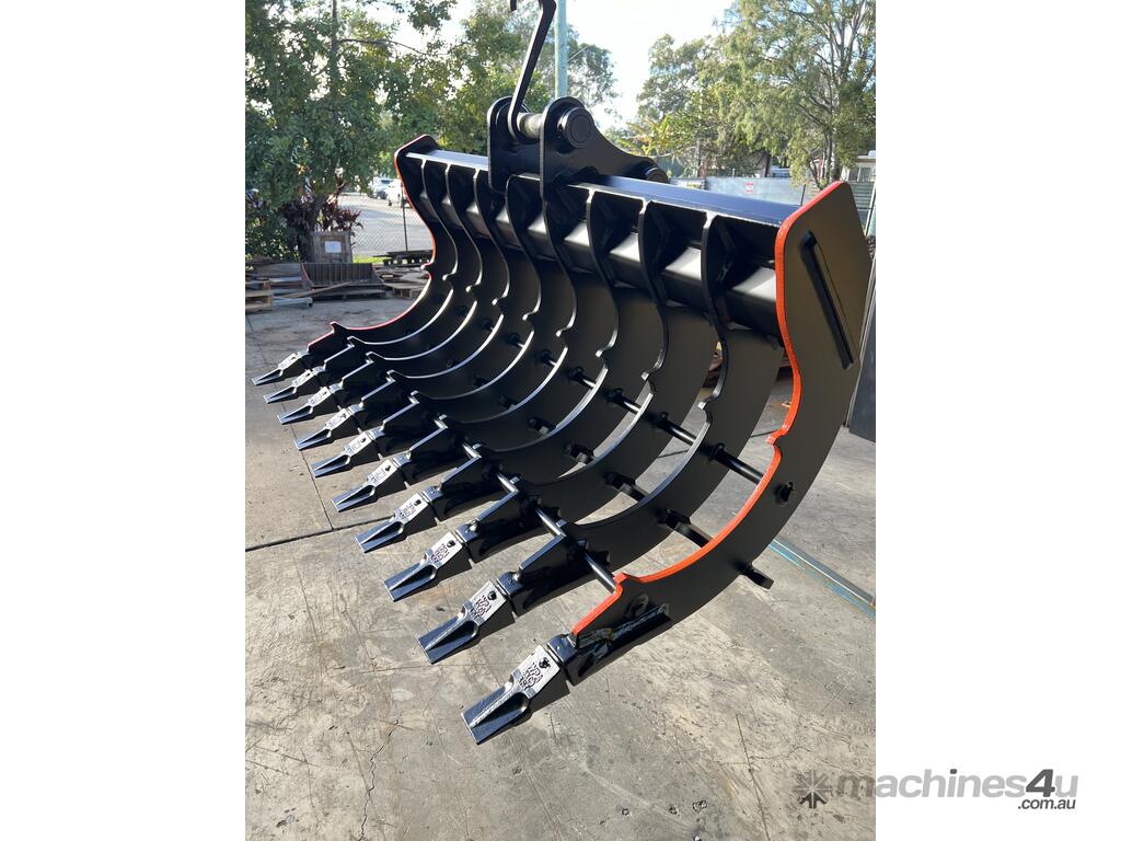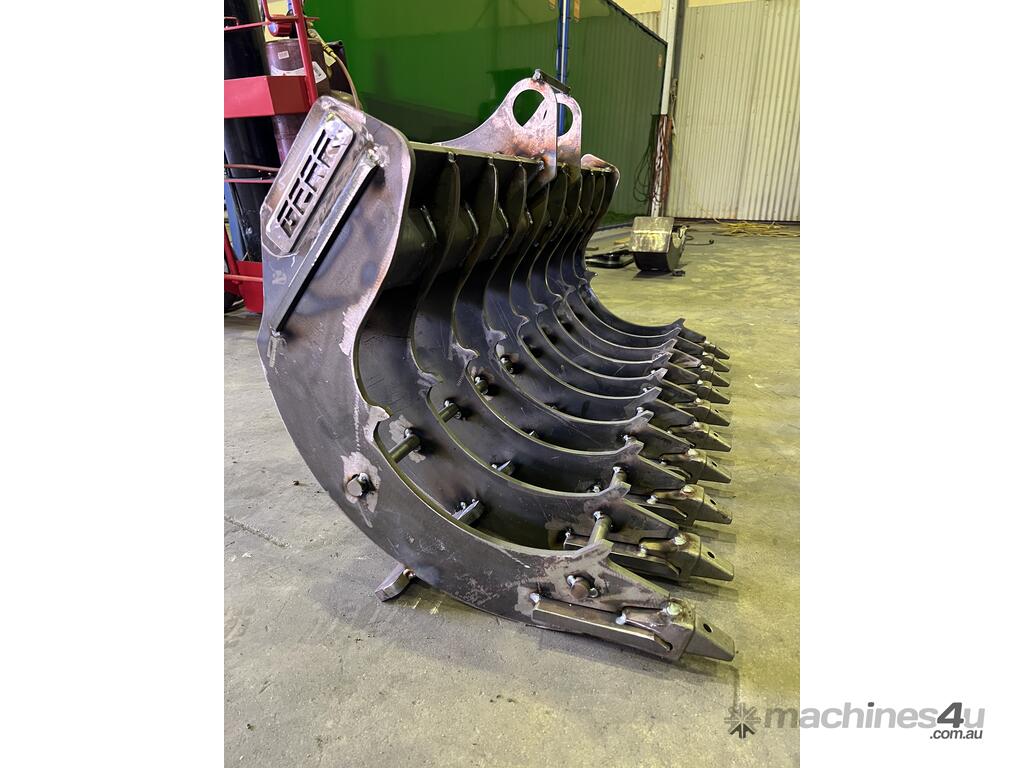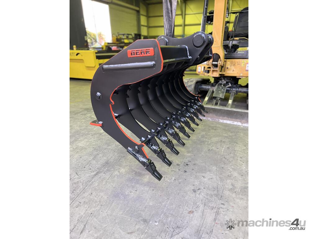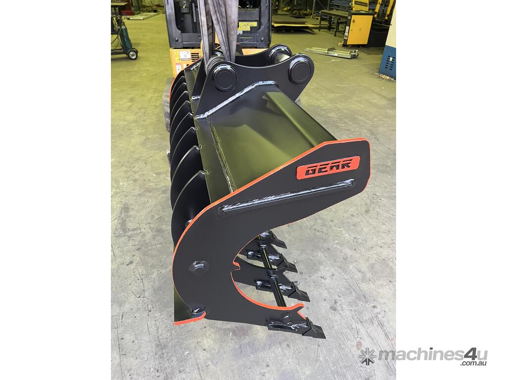 GEAR Multi Purpose rakes are designed to cover 7+ applications allowing you to complete an entire project with just the Multi Rake cutting down on time spent transporting multiple attachments to the site and chopping and changing between attachments.  The multi-rake will Dig, Sieve, Rip, Roll, Carry, Level out, Back blade, Rake and load out trucks and trailers just to name a few tasks. Rip through shrubs, lantana, scrub and loose soils with ease as the rake incorporates the tynes into a log/Post carrier when curled, Lantana ripping teeth are included as standard on all rake tynes, and Short or Long-arm tyne designs are available at customer request