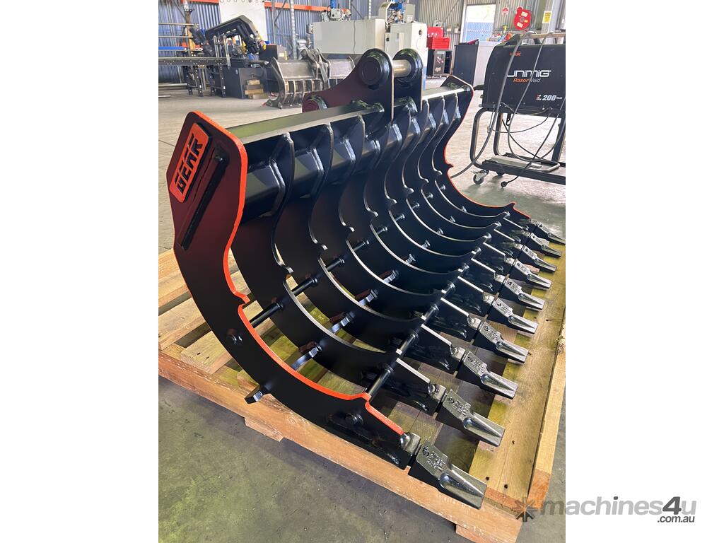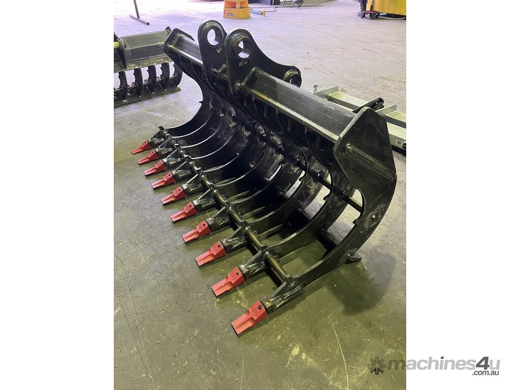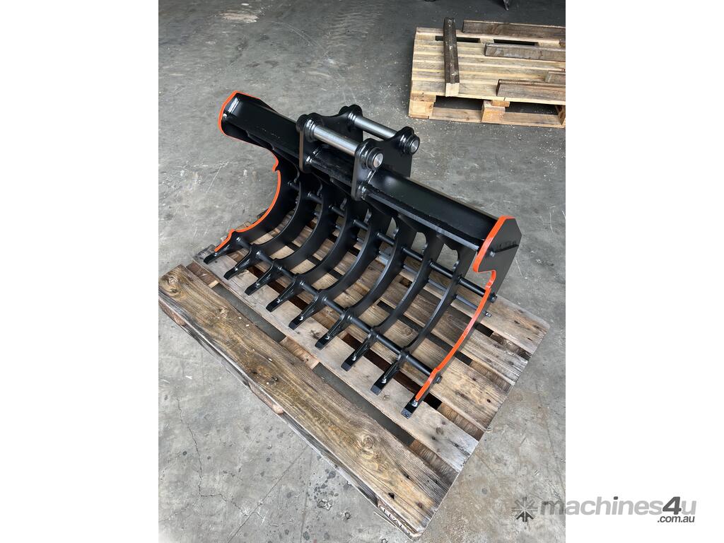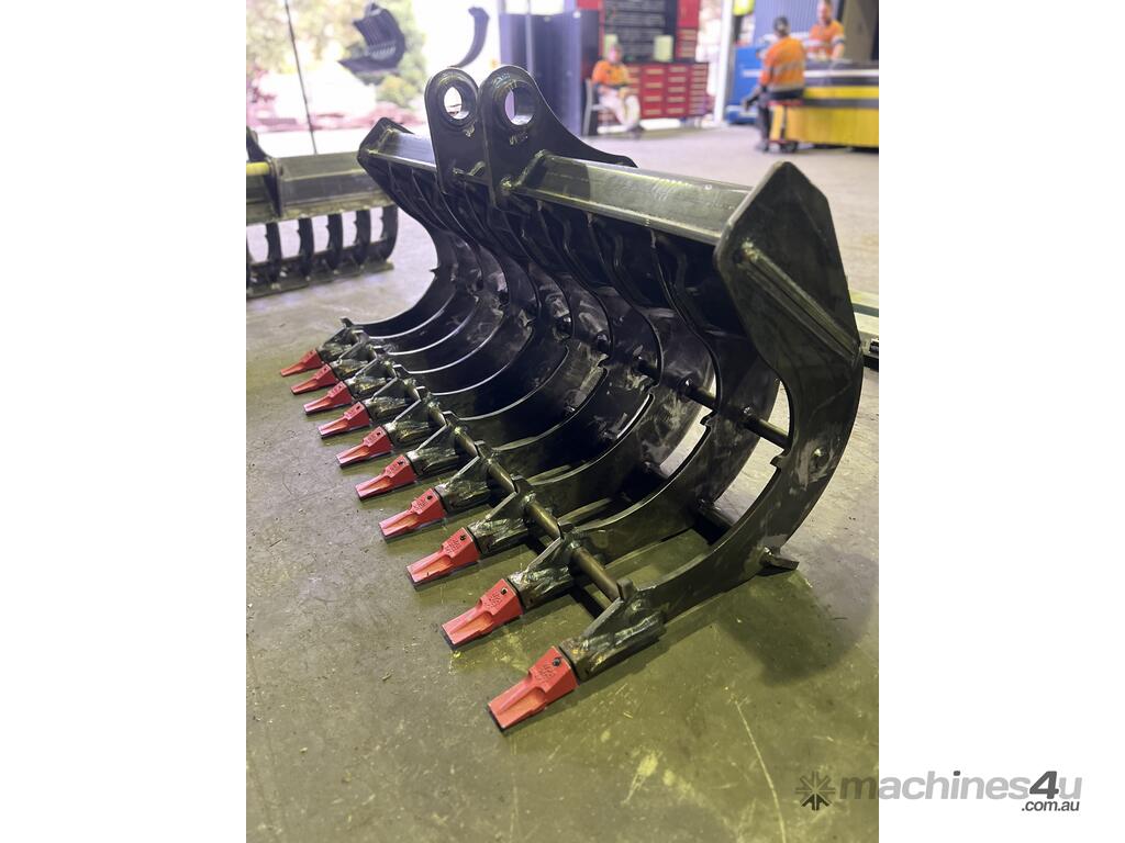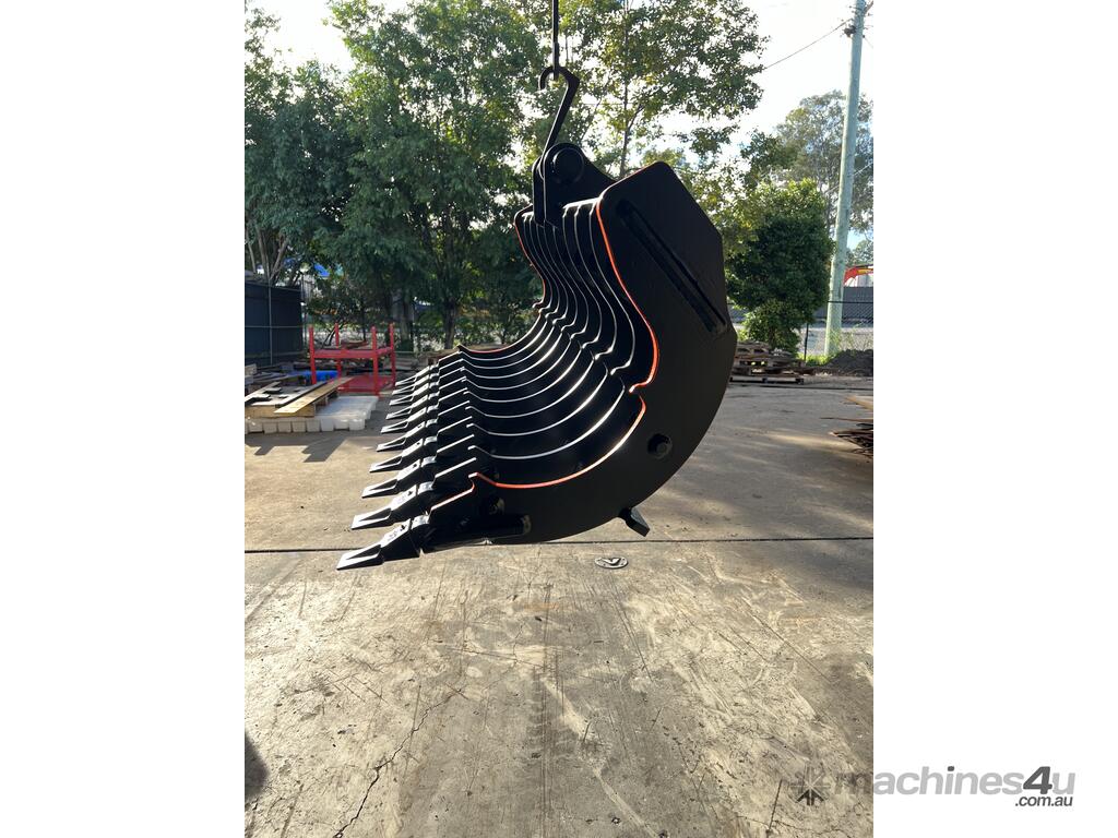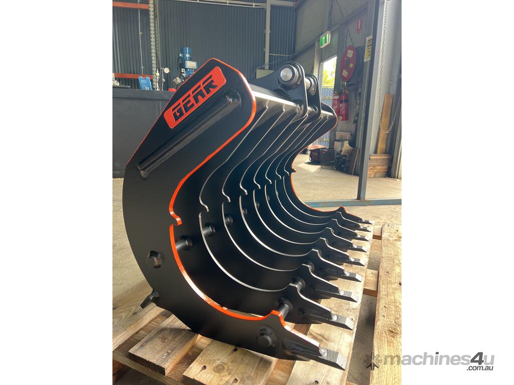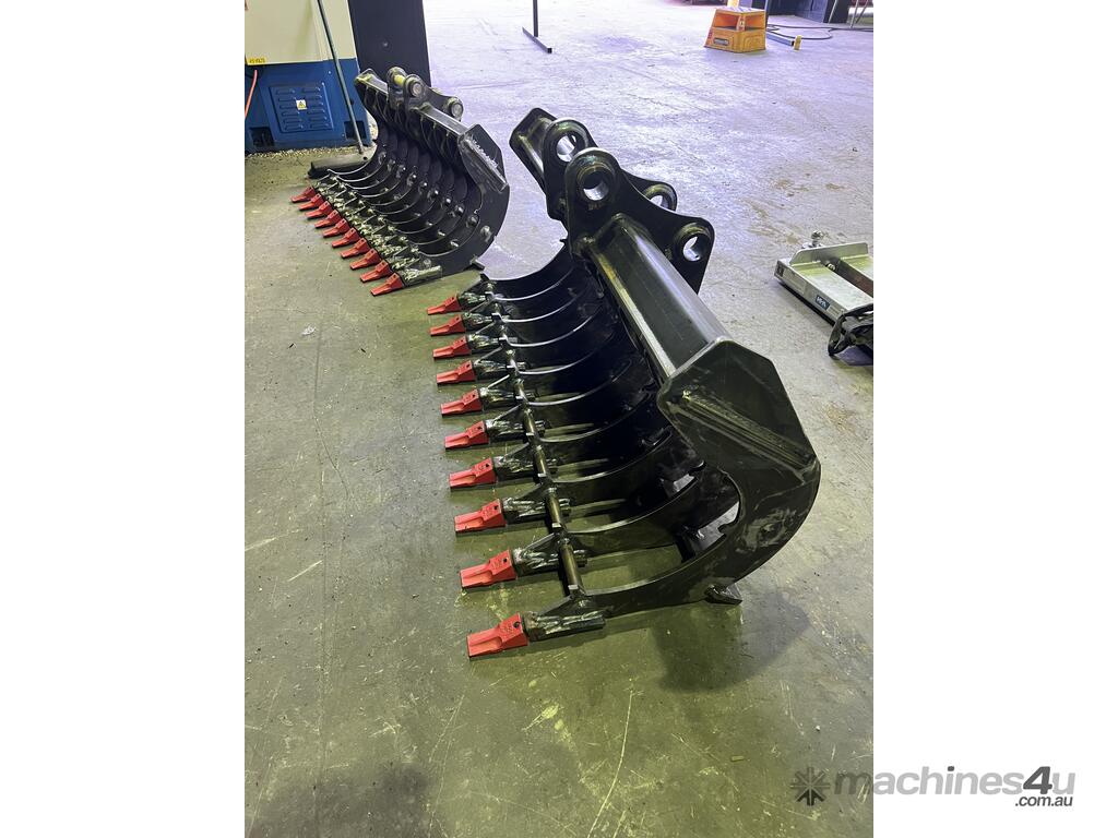 GEAR Multi Purpose rakes are designed to cover 7+ applications allowing you to complete an entire project with just the Multi Rake cutting down on time spent transporting multiple attachments to the site and chopping and changing between attachments.  The multi-rake will Dig, Sieve, Rip, Roll, Carry, Level out, Back blade, Rake and load out trucks and trailers just to name a few tasks. Rip through shrubs, lantana, scrub and loose soils with ease as the rake incorporates the tynes into a log/Post carrier when curled, Lantana ripping teeth are included as standard on all rake tynes, and Short or Long-arm tyne designs are available at customer request