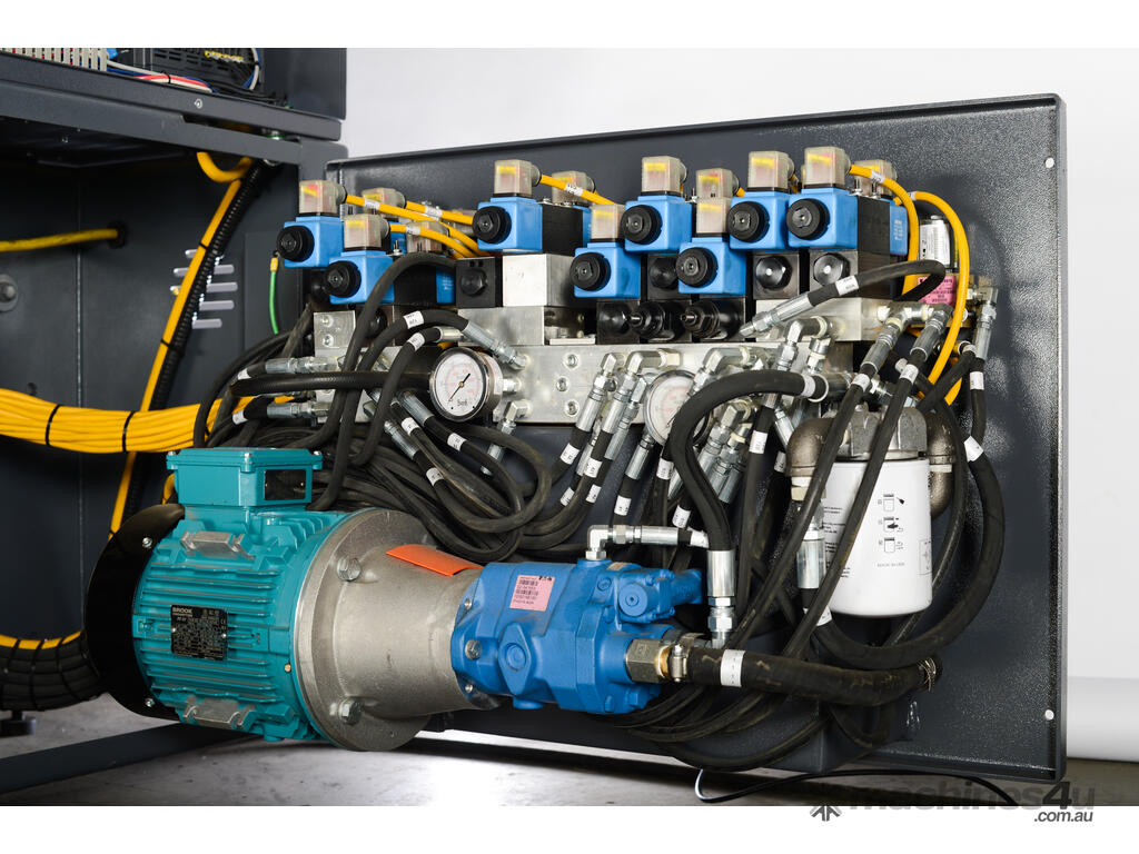 • Four full stroking hydraulic vices (feed, main, and outboard) and squaring vice
