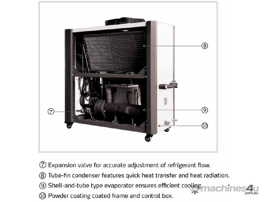 All Shini chillers sold into Australia utilise Environmentally friendly refrigerant R410A CFC-FREE REFRIGERANT for efficient cooling.