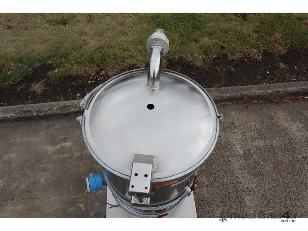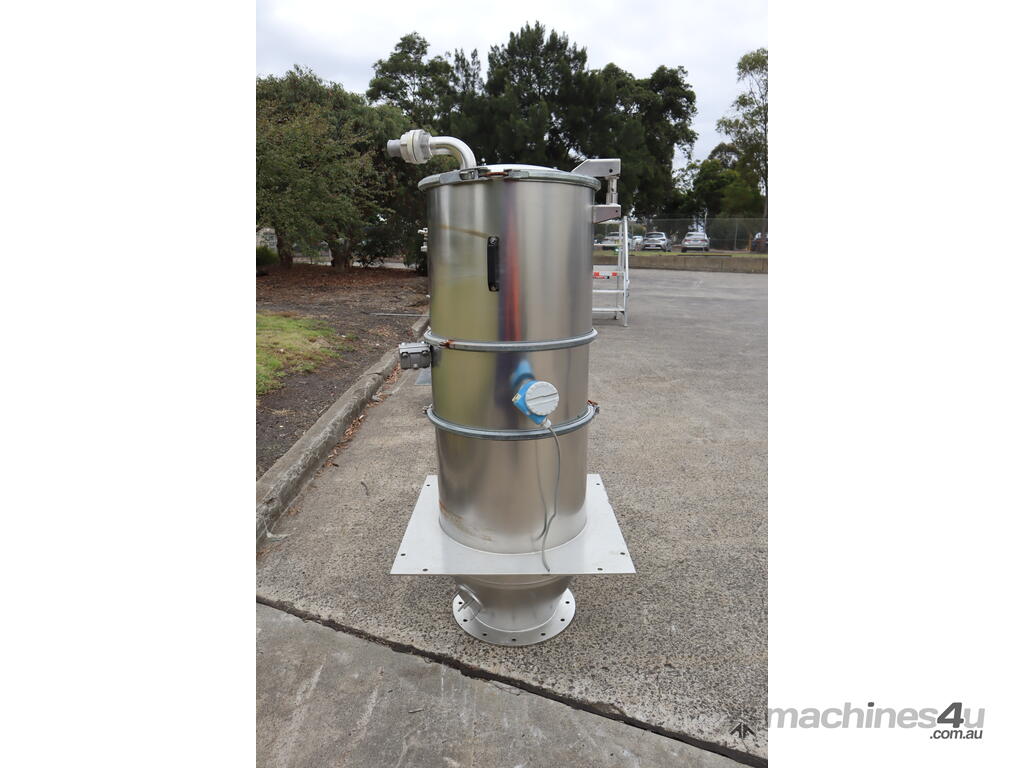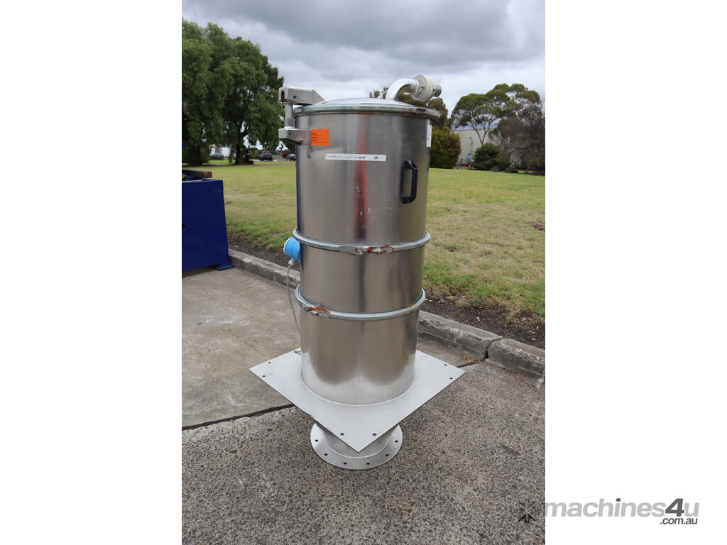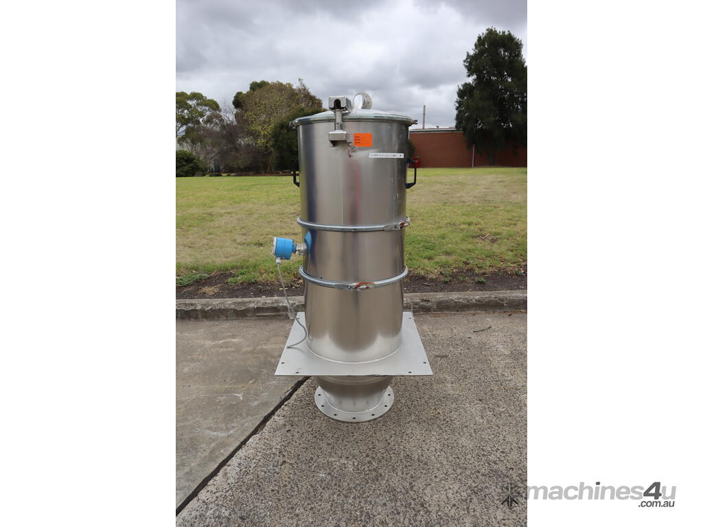 In pneumatic conveying systems for safely feeding processing machines in the food industry, plastics industry and chemistry with granular and powdery bulk materials. The bulk material feed can e.g. B. from a sack, barrel, container or silo. The separator types A... are used for discontinuous suction conveying systems, suction flow and suction pulse systems as individual separators, each with a separate blower. They are installed on the machine hopper of the processing machine and are used to separate the bulk materials.
