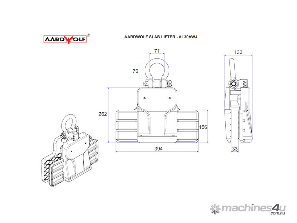 The Aardwolf Slab Lifter Auto Wide Jaw (AL30AWJ) features extra-wide jaws and a compact design, making it a tailored slab lifter for businesses handling thin sheets of stone, engineered porcelain, ceramic, and other thin slab materials.