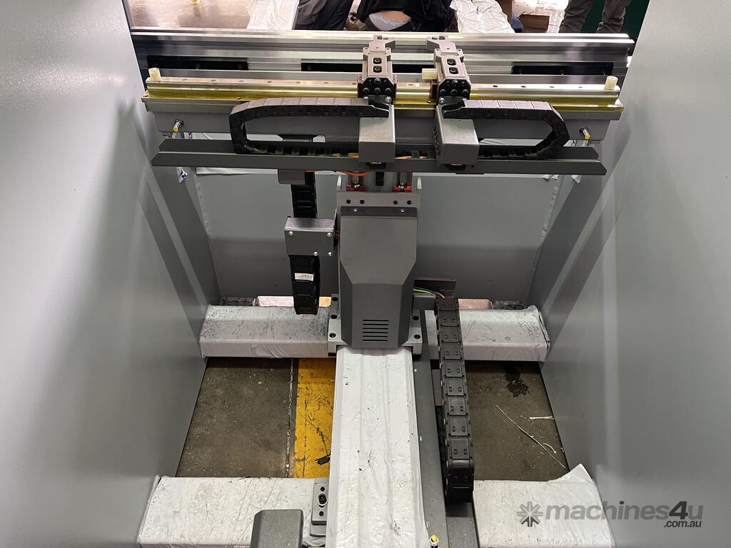 The guarding system used is from Perth and is the advanced system from Lasersafe allowing for a very impressive 1mm stopping distance above the material. The way this press brake is optioned up, its made to be a production machine and offer accuracy and speed.
