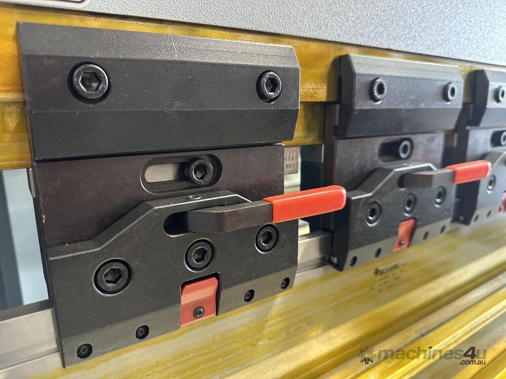 The AccurlCMT torsion bar range of hydraulic press brakes offer an extremely well spec'd up machine with high end machine features on a competitively priced press brake. These press brakes have a multitude of features which not only enhance the machine output and accuracy but also adds a level of simplicity for the operator with features such as a 2D graphical touch screen controller out of Italy, crowning table, next gen quick release upper tool clamps, Lasersafe guarding system manufacturers in Perth and servo driven X & Y axes for blistering fast positioning of your back gauge and bending beam.