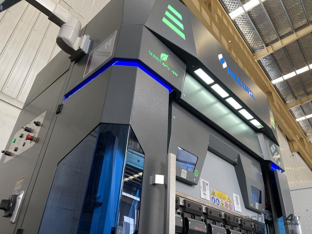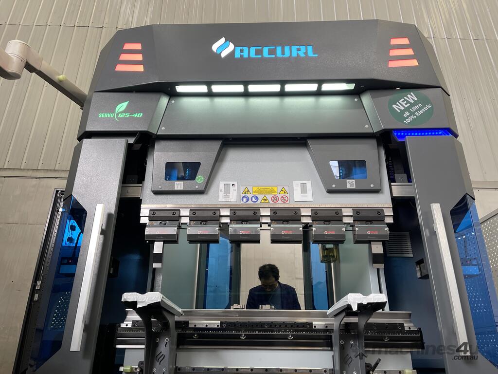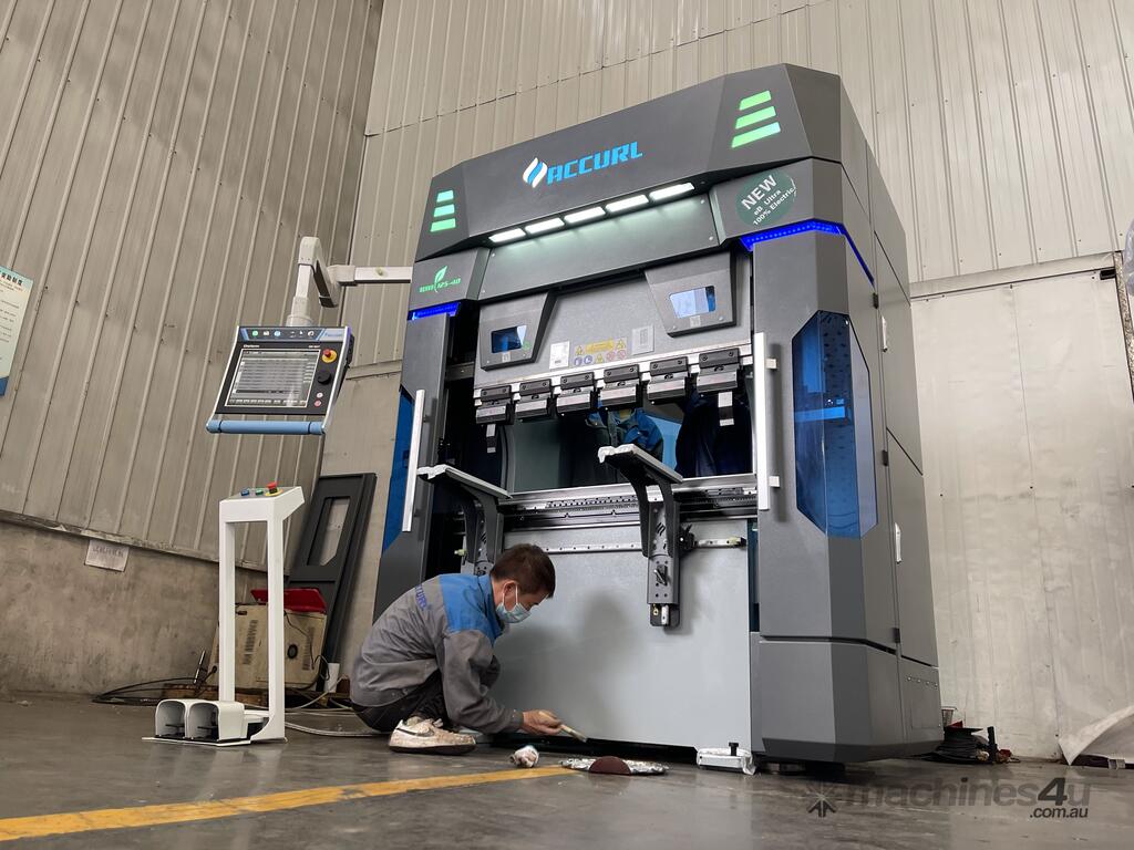 The AccurlCMT servo ball screw press brakes are the latest technologically advanced press brakes in the AccurlCMT stable of press brakes. Utilising servo motors and ball screw the AccurlCMT eB ULTRA series is ultra quite and uses no oil at all. This machine has no dwell times increasing cycle times significantly! Its super quick and if you are doing small lengths or small components you cant get a faster more efficient machine than this, not to mention its one good looking piece of machinery!