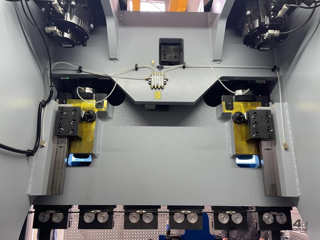 The guarding system used is from Perth and is the advanced system from Lasersafe allowing for a very impressive 1mm stopping distance above the material. The way this press brake is optioned up, its made to be a production machine and offer accuracy and speed.