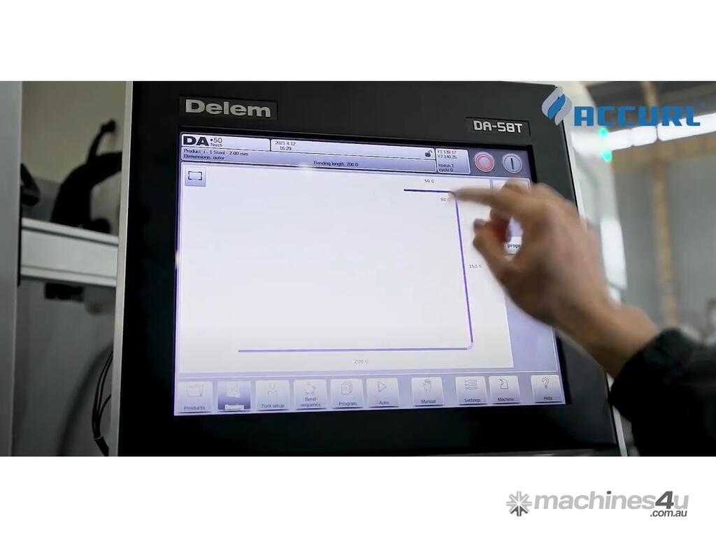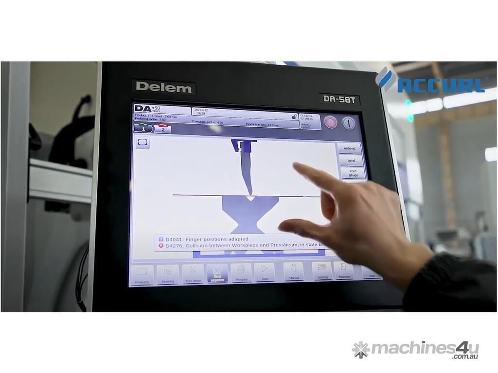 AccurlCMT 220 ton x 4m CNC Press Brake with a Delem DA-58T Graphical controller and 5 controllable axis.