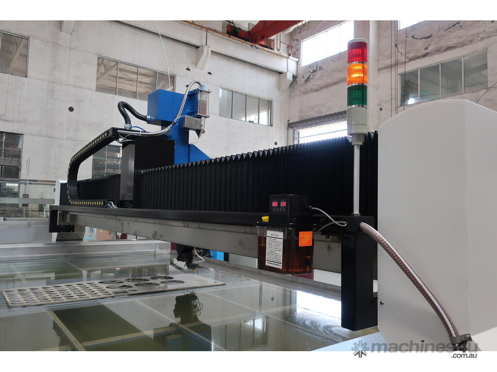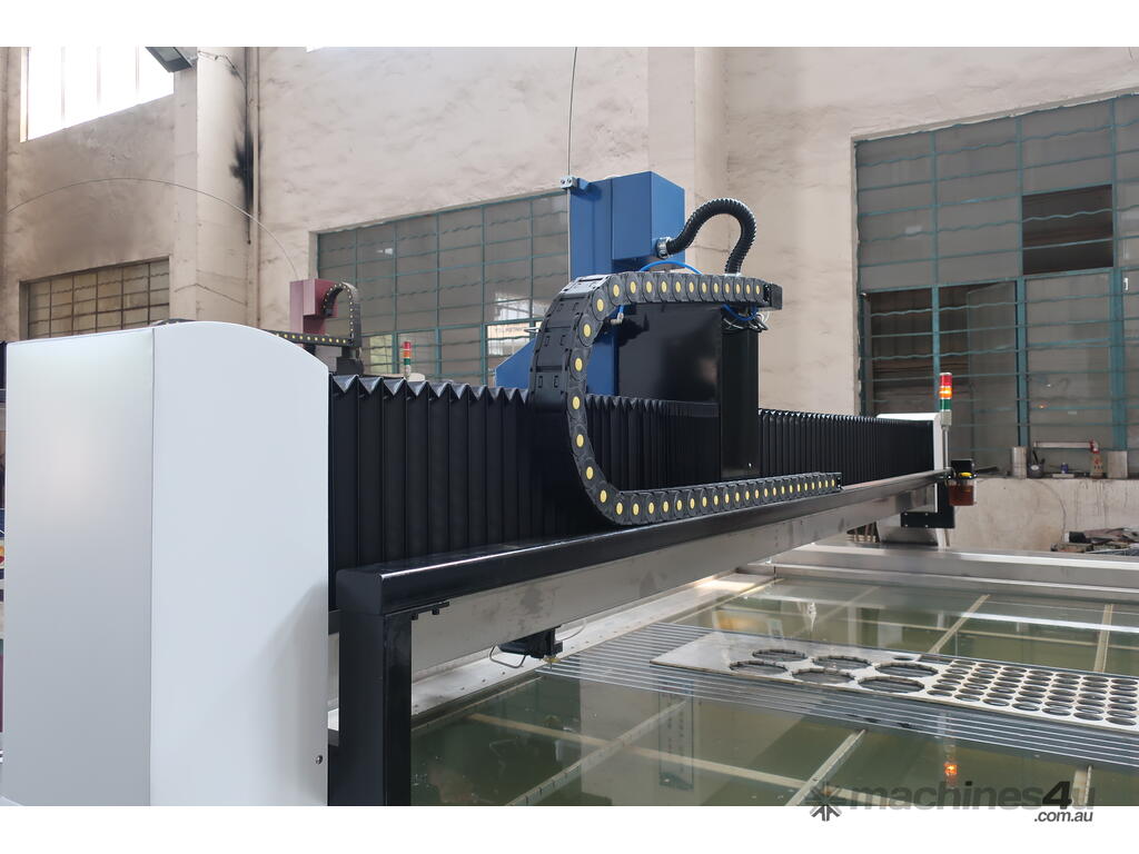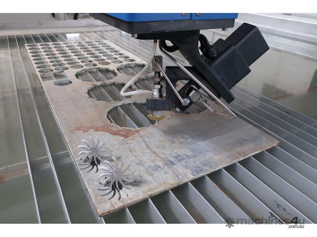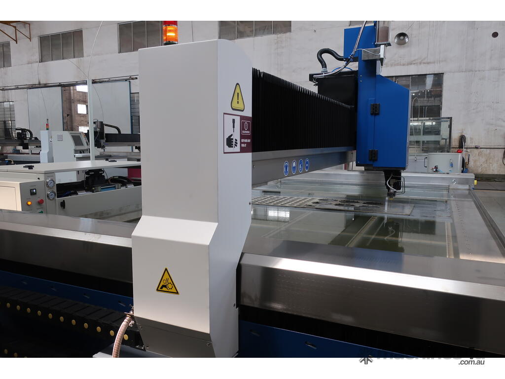 Multiple table sizes are available starting with1200 x 1200mm up to a very large 12000mm x 3000mm. The standard offering is a Hypertherm pump but a KMT pump can be optioned up.
