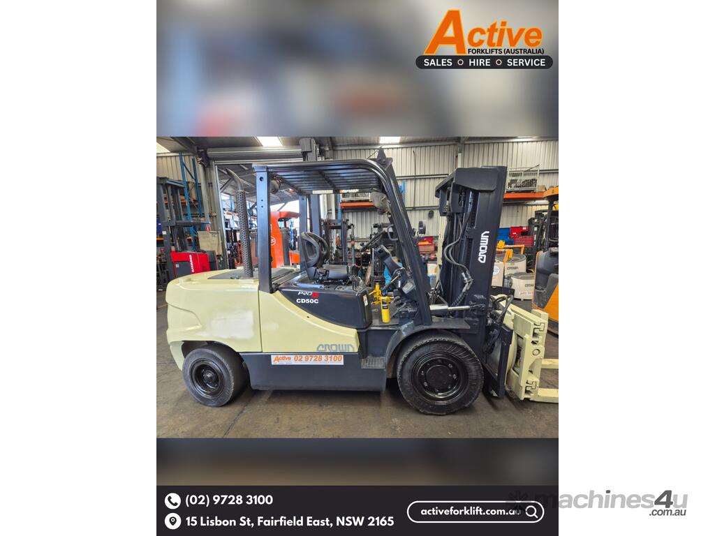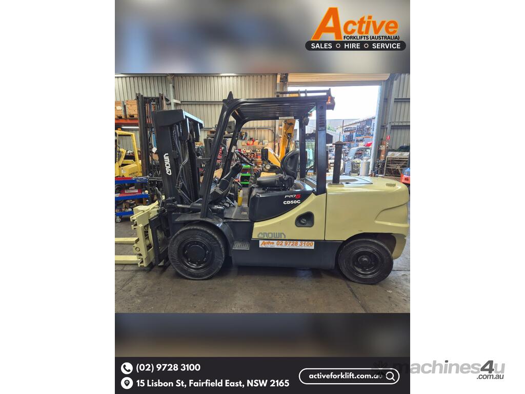 Introducing the 2007 Crown CD50C-5 Diesel Forklift—a powerhouse designed for strength and efficiency in demanding industrial environments. This robust machine is built to handle heavy-duty tasks with precision and reliability.