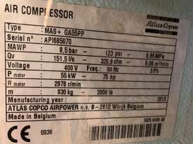 8). ATLAS COPCO MAS+ GA55PP 55Kw 75hp 415v 8.5 BAR 320CFM 151 l/s 123 psi MARINE SPECIFICATION ROTARY SCREW COMPRESSOR * LOW HOURS * Year 2013 MADE IN BELGIUM Including Water-Cooled Option (Connect to Water Tower) Suits High Temperature Environments (See Below) Including SANDBLASTING, MINING etc. In Storage Since March 2016, Very Good Condition, Rare Opportunity, FRACTION OF REPLACEMENT COST - HUGE PRICE REDUCTION! BARGAIN!!