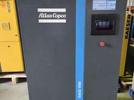 7). ATLAS COPCO GA22 VSD 22kw 30hp 415v 8-13 BAR 138CFM VARIABLE SPEED ROTARY SCREW COMPRESSOR BASE MOUNT Year 10/2020, GENUINE LOW 5,500 RUN HOURS (TBC), REGULARLY SERVICED INCLUDING RECENT OIL SEPARATOR REPLACEMENT. HUGE PRICE REDUCTION! TESTED SHOWING OIL LEAK FROM DIRECT DRIVE ELECTRIC MOTOR, REPAIRABLE.
