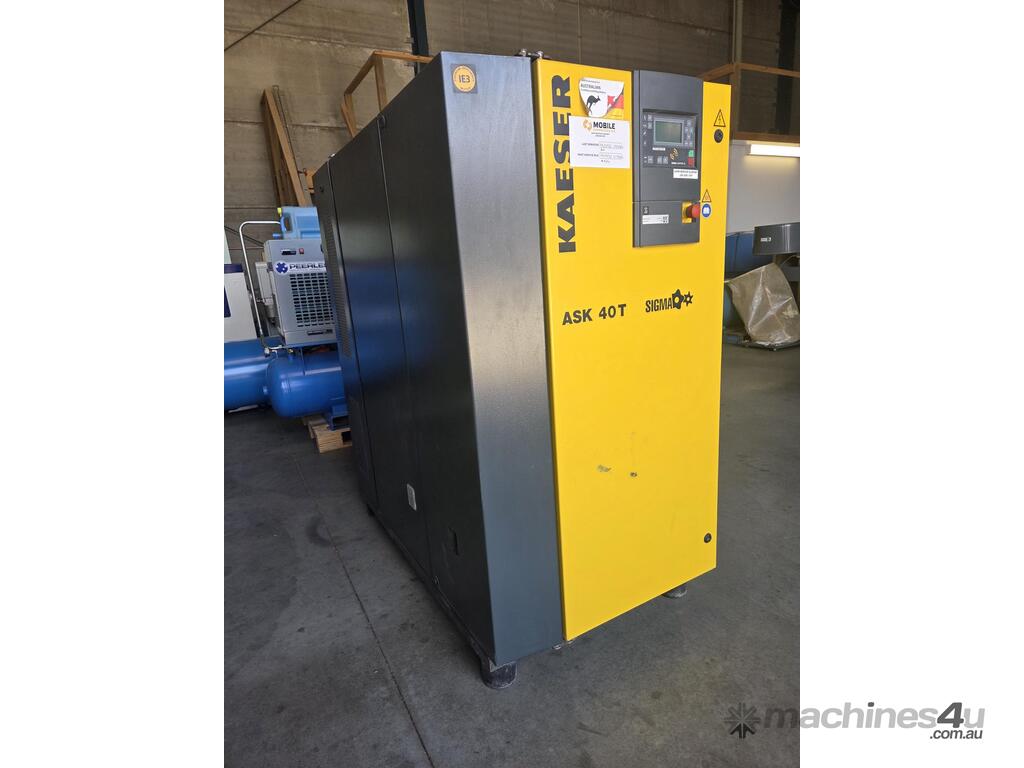 5). KAESER ASK 40T 22kw 30hp 8 BAR 2-IN-1 FEATURED ROTARY SCREW COMPRESSOR Year 11/2018 INCLUDING BUILT-IN REFRIGERATED AIR DRYER / FILTERS, SIGMA 2 ELECTRONIC CONTROLLER, RFID SERVICE OPTION INCLUDING SWIPE CARD, MADE IN GERMANY, HEAVY DUTY, SUPER QUIET, GENUINE LOW 20,300 RUN HOURS, RECENTLY SERVICED, 1 OWNER, TOP CONDITION. REQUEST BROCHURE. REQUEST EXTRA PHOTOS. 1/2 NEW PRICE!