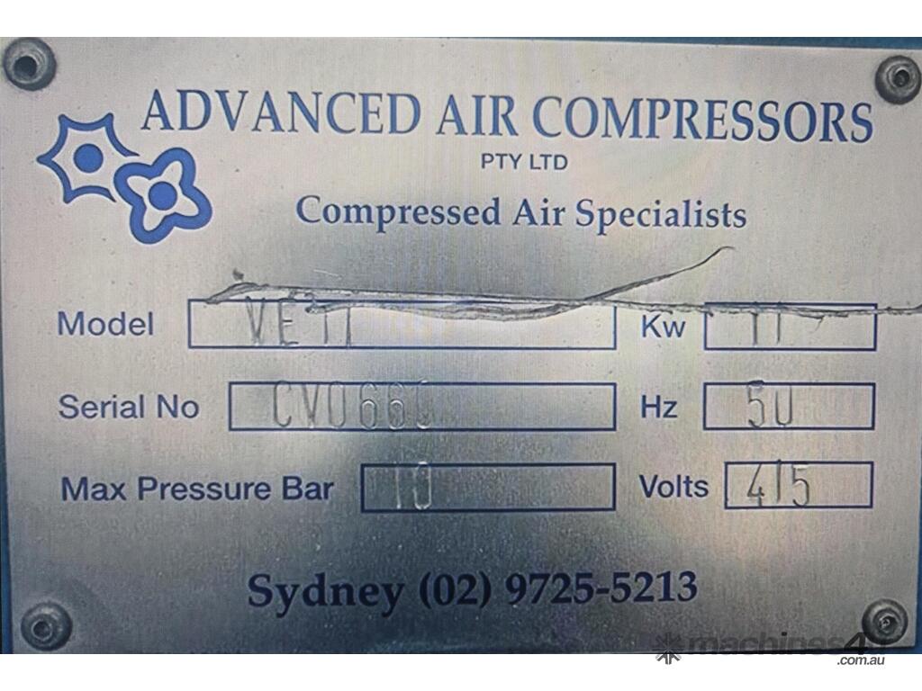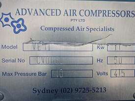 1). ADICOMP VE11 11kw 15hp 415v 10 BAR 3-IN-1 FULLY FEATURED ROTARY SCREW COMPRESSOR Year 2008 MADE IN ITALY INCLUDING BUILT-IN REFRIGERATED AIR DRYER 240v/FILTER MOUNTED ON 500 LITRE AIR RECEIVER TANK, GENUINE LOW 16,822 RUN HOURS, REGULARLY SERVICED BY ADVANCED AIR COMPRESSORS, VERY GOOD CONDITION. BARGAIN!