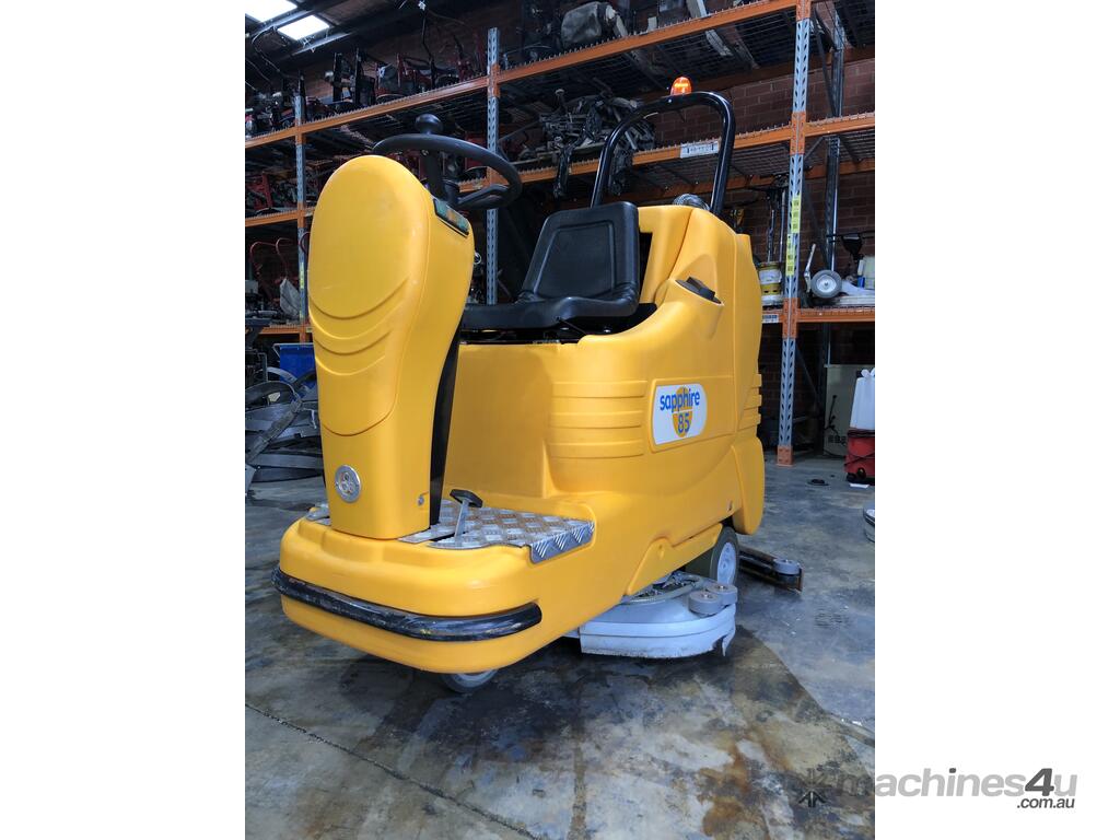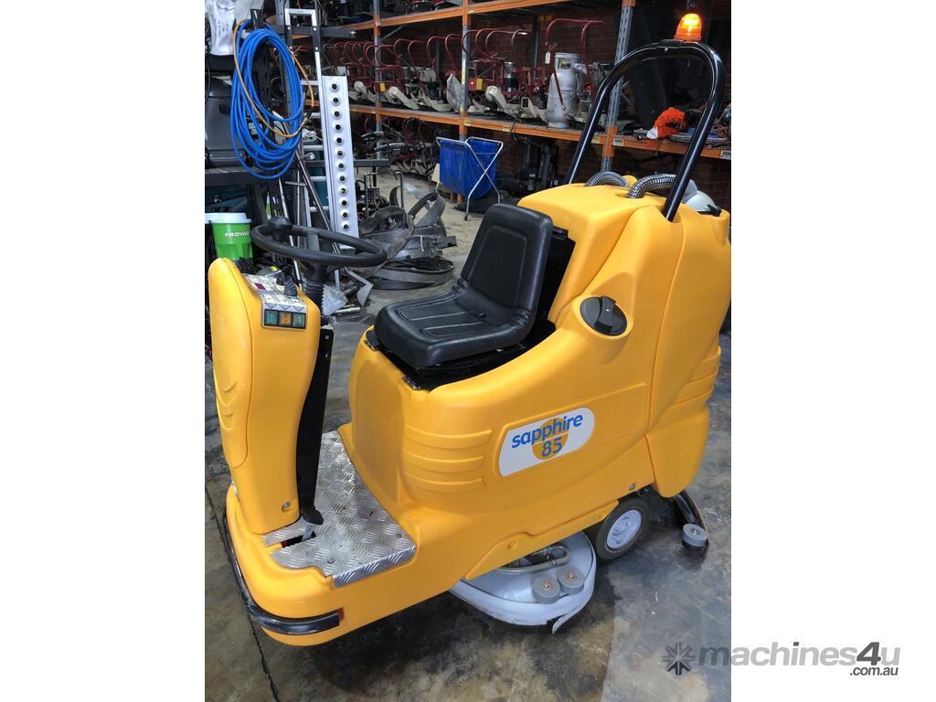 The Sapphire 85 is a medium size ride-on scrubber with two counter rotating disc brushes and pad holders of 430mm. It has a cleaning width of 850mm.