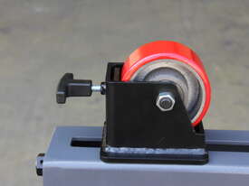 The PTR-800 pipe roller stand is designed to support and rotate large-diameter pipes during fabrication, layout, fit-up, cutting, and welding tasks. It features a rugged roller head with adjustable roller spacing that accommodates pipes from 12 mm to 910 mm in diameter. The wide 810 x 580 mm base provides excellent stability, while the rollers allow smooth, effortless rotation of the pipe. An integrated brake system lets you lock the rotation when needed for precise work.